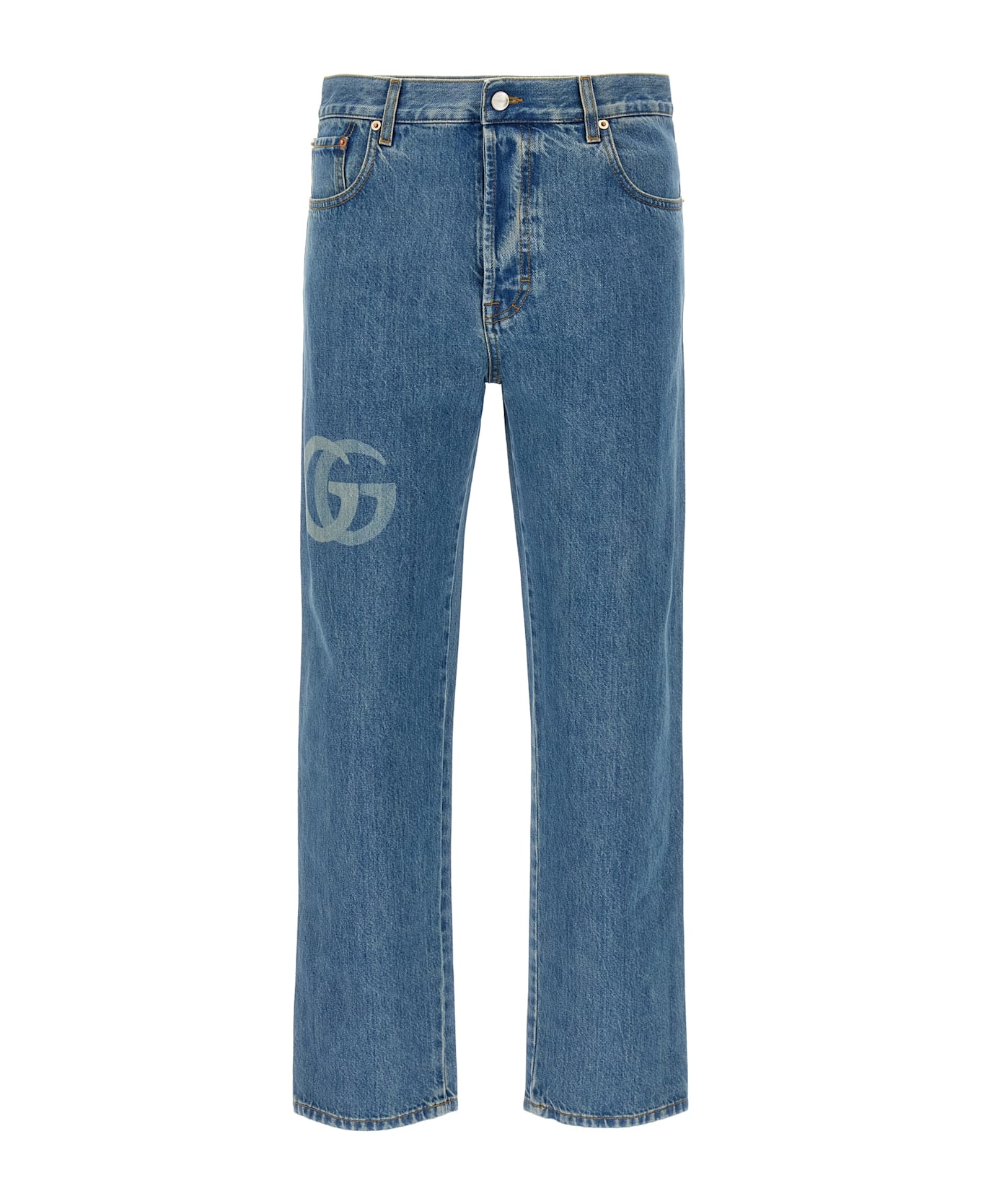 Washed effect cotton denim jeans, lasered Double G logo and front button closure, crop model, five pockets, and leather logo label at the back. Any differences between the garments are to be considered a merit and not a defect. Composition: 100% cotton