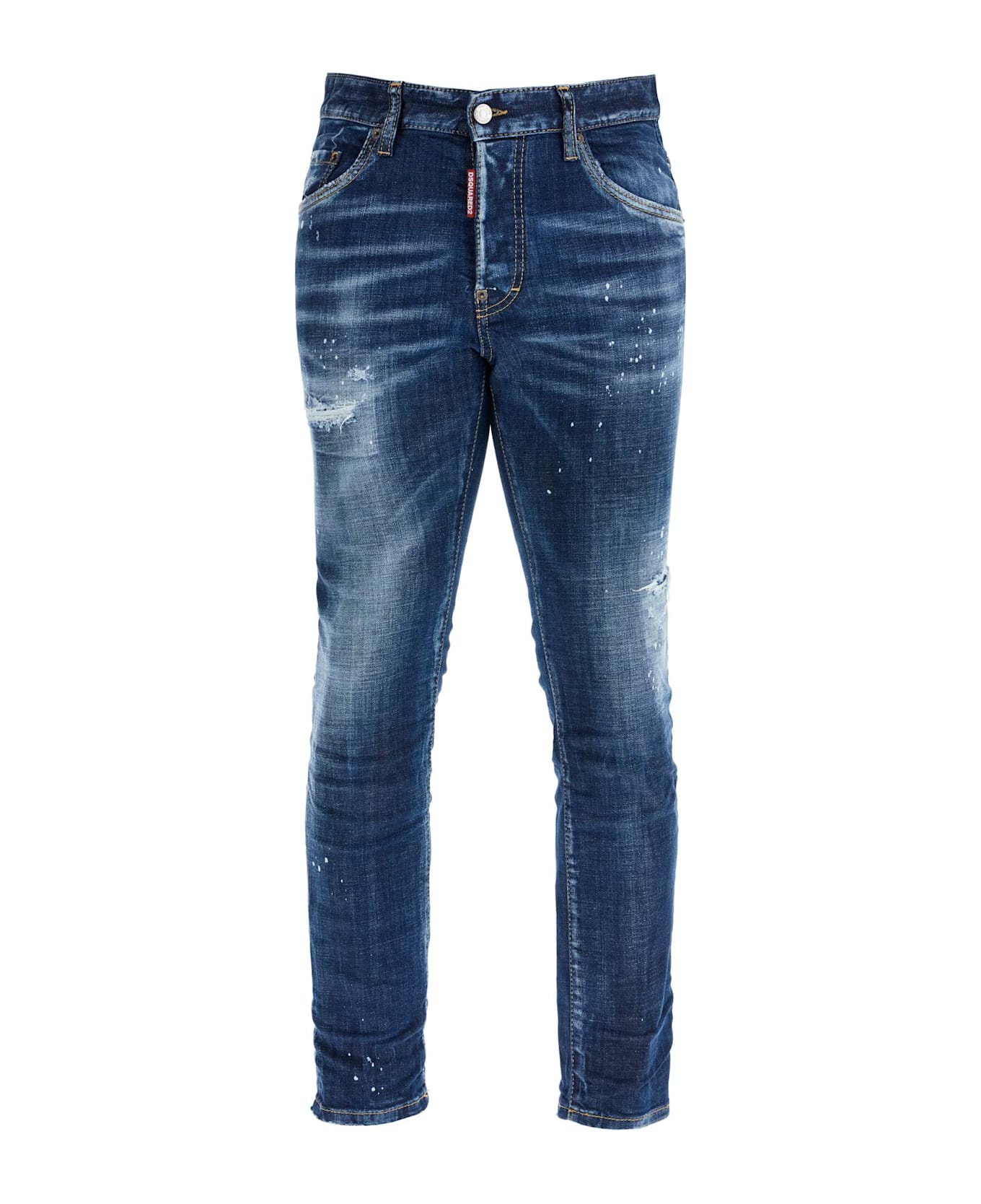 DSQUARED2 Slim Fit Skater Jeans offer contemporary elegance. Made in Italy with premium navy blue cotton. Modern design with wear details. Flawless fit for the sophisticated man.