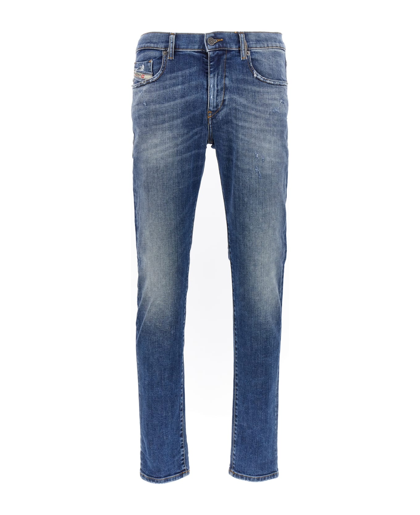 Dstrukt mid-rise denim jeans in stretch cotton with used-effect details, zipper and button closure, five pockets, embroidered logo on the back, logo label at the back, and slim leg. Composition: 99% cotton, 1% elastane