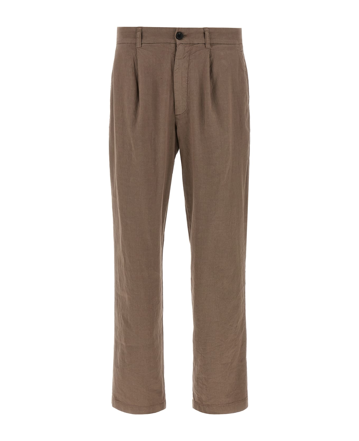 'Gin' pants in linen and cotton blend, zip and button closure, pin tucks, ironed crease, pockets, straight leg. Composition: 57% linen 42% cotton 1% elastane