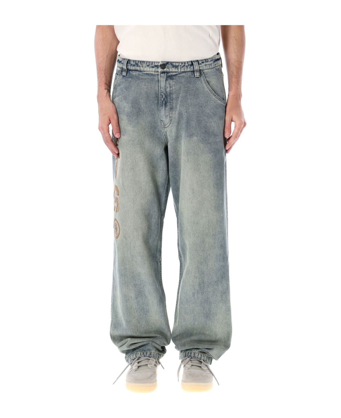 Cotton-blend Htg Branded Denim Pant By Honor The Gift. Featuring: Low-rise Button And Zip Fastening Five Pockets Art Embroidery At Right Thigh Washed Denim Premium Htg® Trims / Labels Model Is 1,90 M Tall And He Is Wearing Size 34