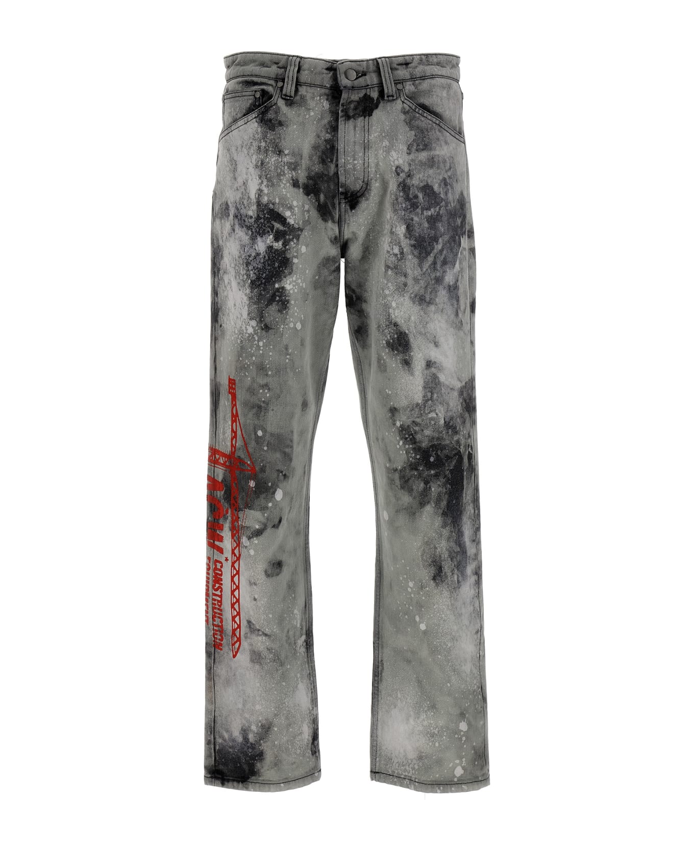 Denim Site' cotton denim jeans with all-over print and spots details, a zip and button closure, five pockets and a contrast maxi leather logo tag.
