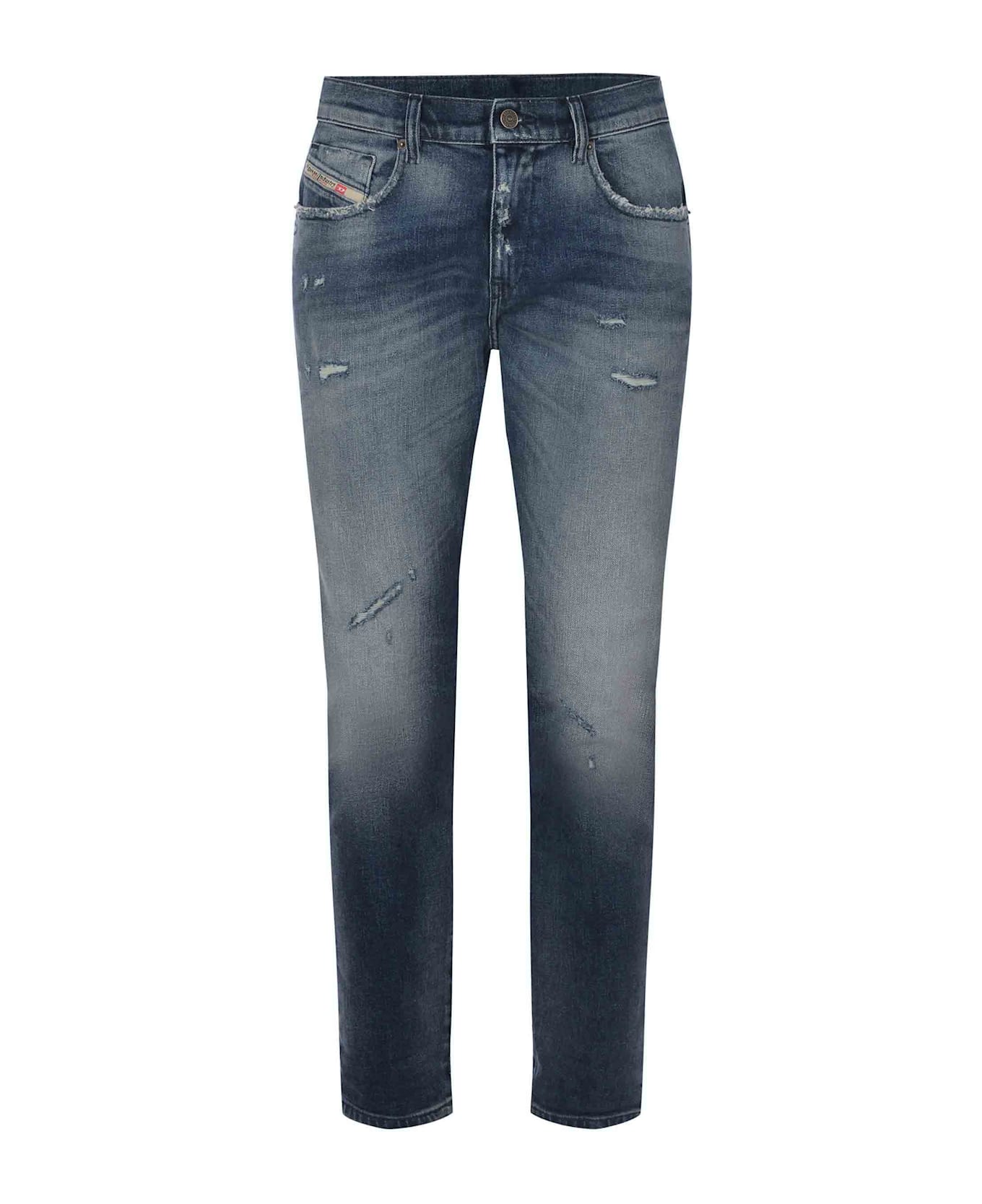 Jeans Diesel made of Light Blue denim. Stone wash effect. Micro tears and patches. Belt loops. Five pockets. Logo lettering engraved on the pocket. Zip and button closure. Logo label applied on the back. Red "D" logo on the back pocket. 99% Cotton 1% Elastane Composition: Denim Stretch
