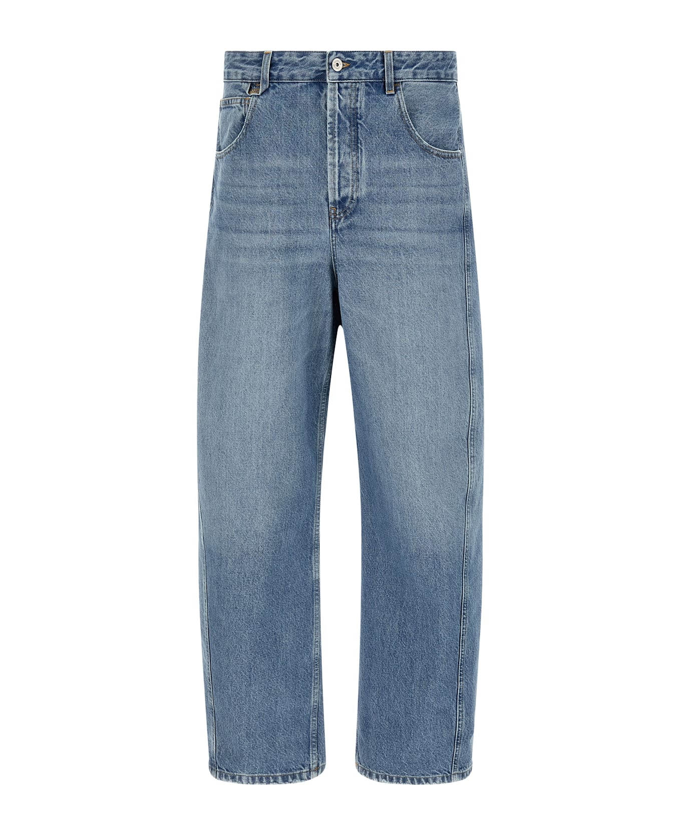 'Le De-Nimes Mirada' stonewashed cotton denim jeans with contrast stitching, high waist, wide leg with a curved cut, front button closure, five pockets. Composition: 100% cotton