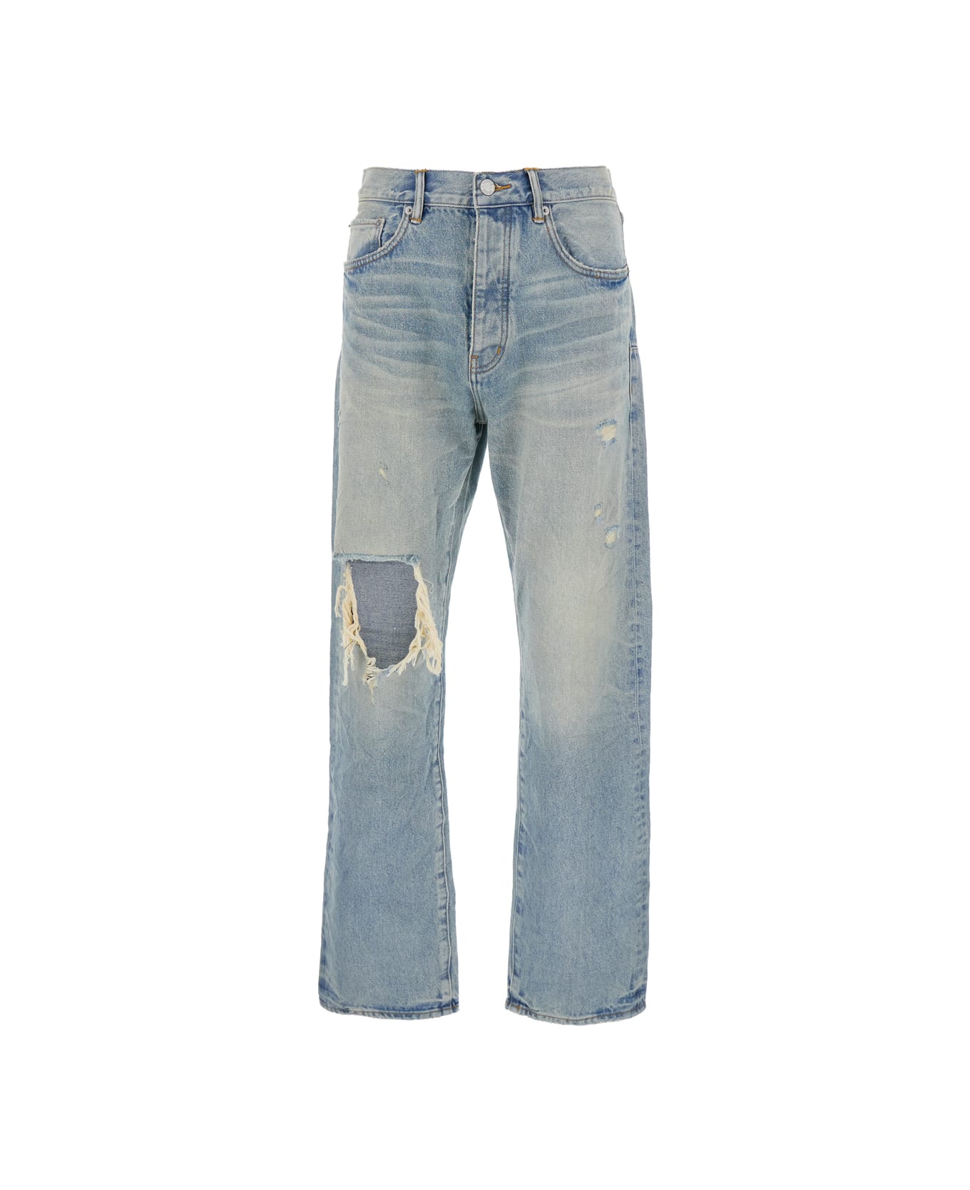 Light Blue Jeans With Logo Patch On The Rear And Maxi Ripping On The Front In Denim Man