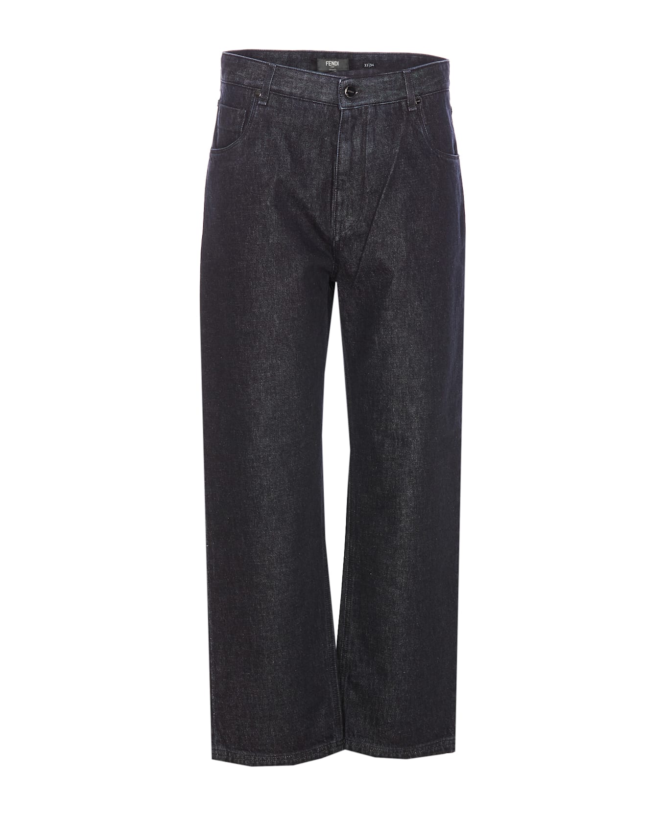 Fendi denim Adim jeans with frontal zip and button closure, pockets, wide and straight fit, patch logo on the back Composition: 100% Cotton