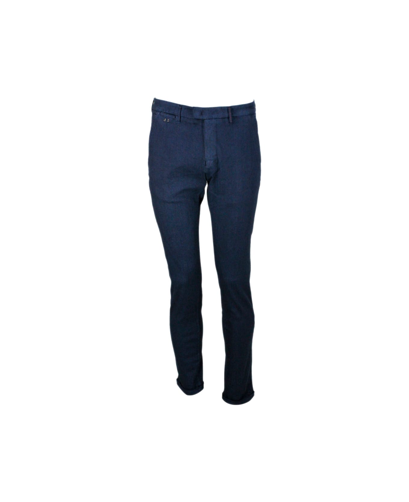 luis slim trousers in stretch cotton gabardine with america pockets with tailored stitching