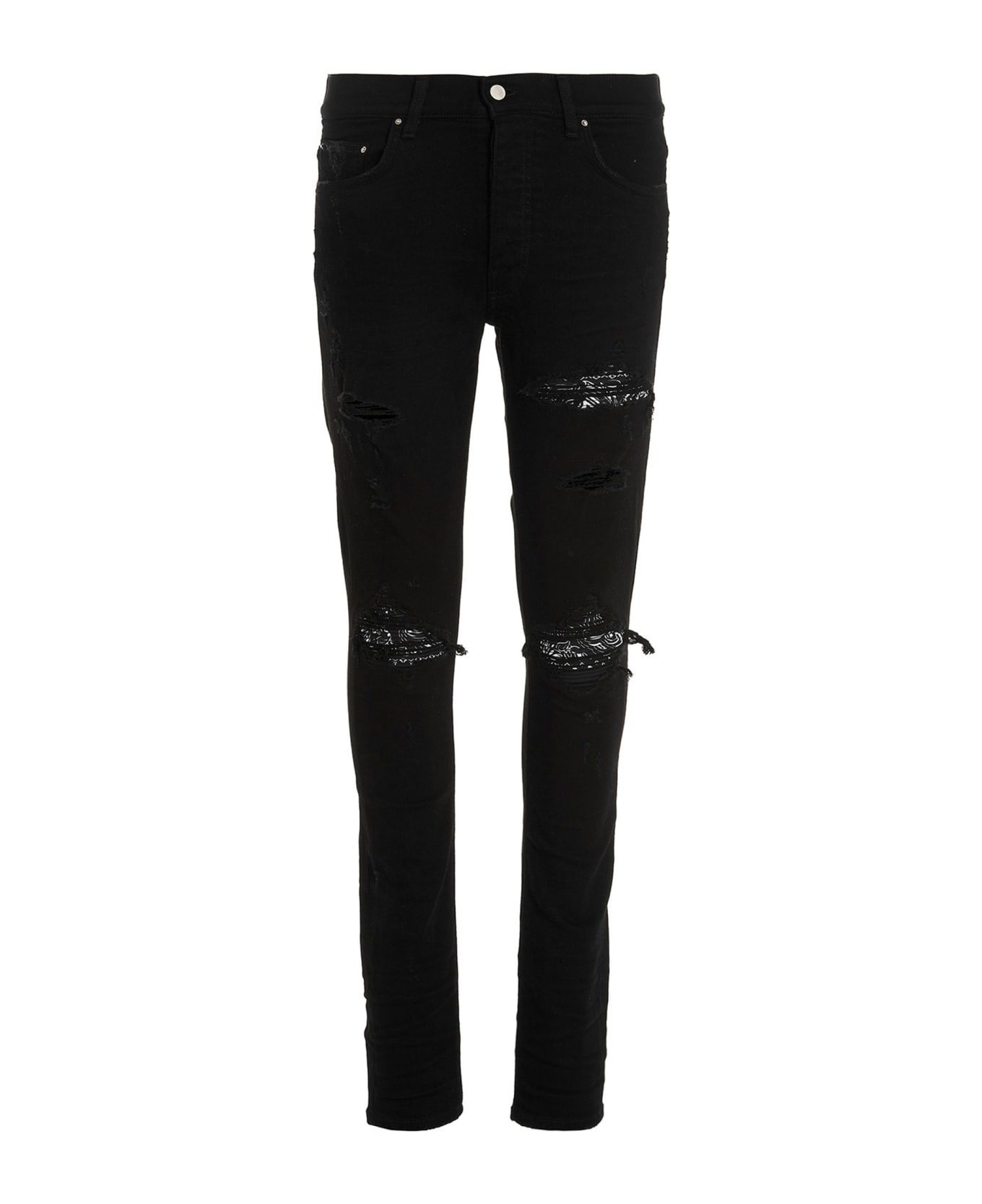 'MX1 Bandana' stretch cotton denim jeans with destroyed details, button closure, five pockets, skinny leg.