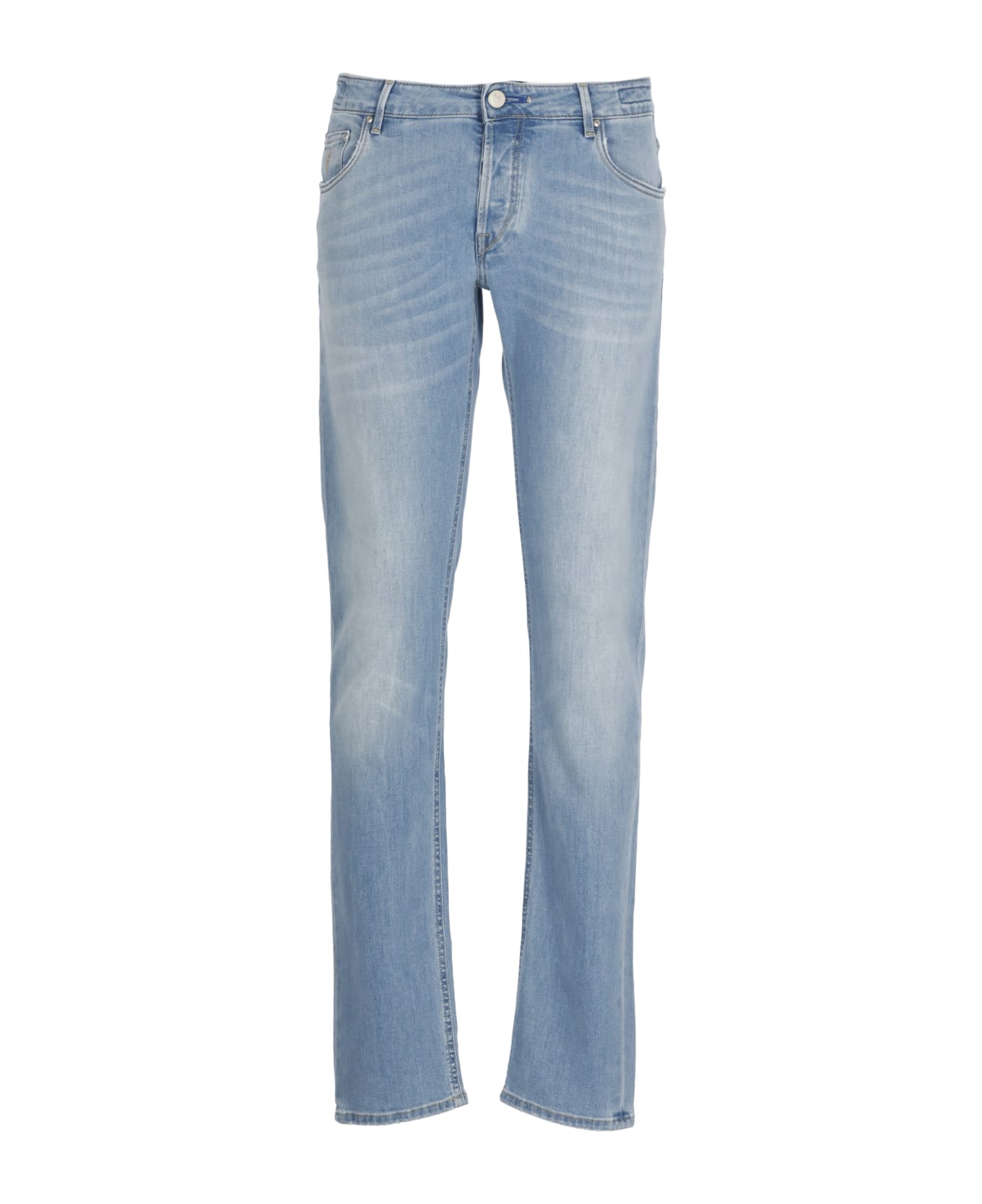 Orvieto Cotton Jeans from Hand Picked: - Light blue Hand Picked cotton jeans for man - Belt loops - Five pockets - Rear contrasting color logoed patch - Front zip and buttons fastening