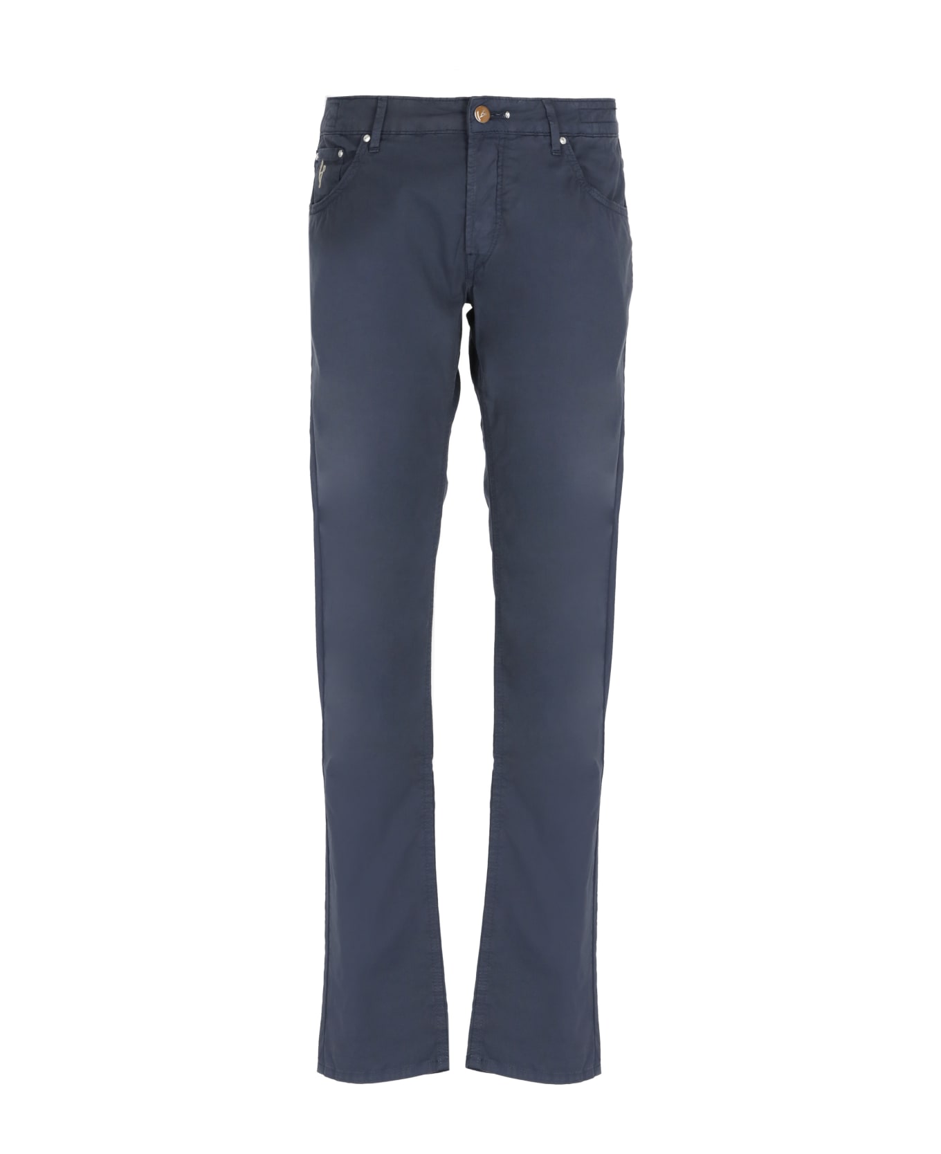 Orvieto Cotton Jeans from Hand Picked: - Blue Hand Picked cotton jeans for man - Belt loops - Five pockets - Rear contrasting color logoed patch - Front zip and buttons fastening