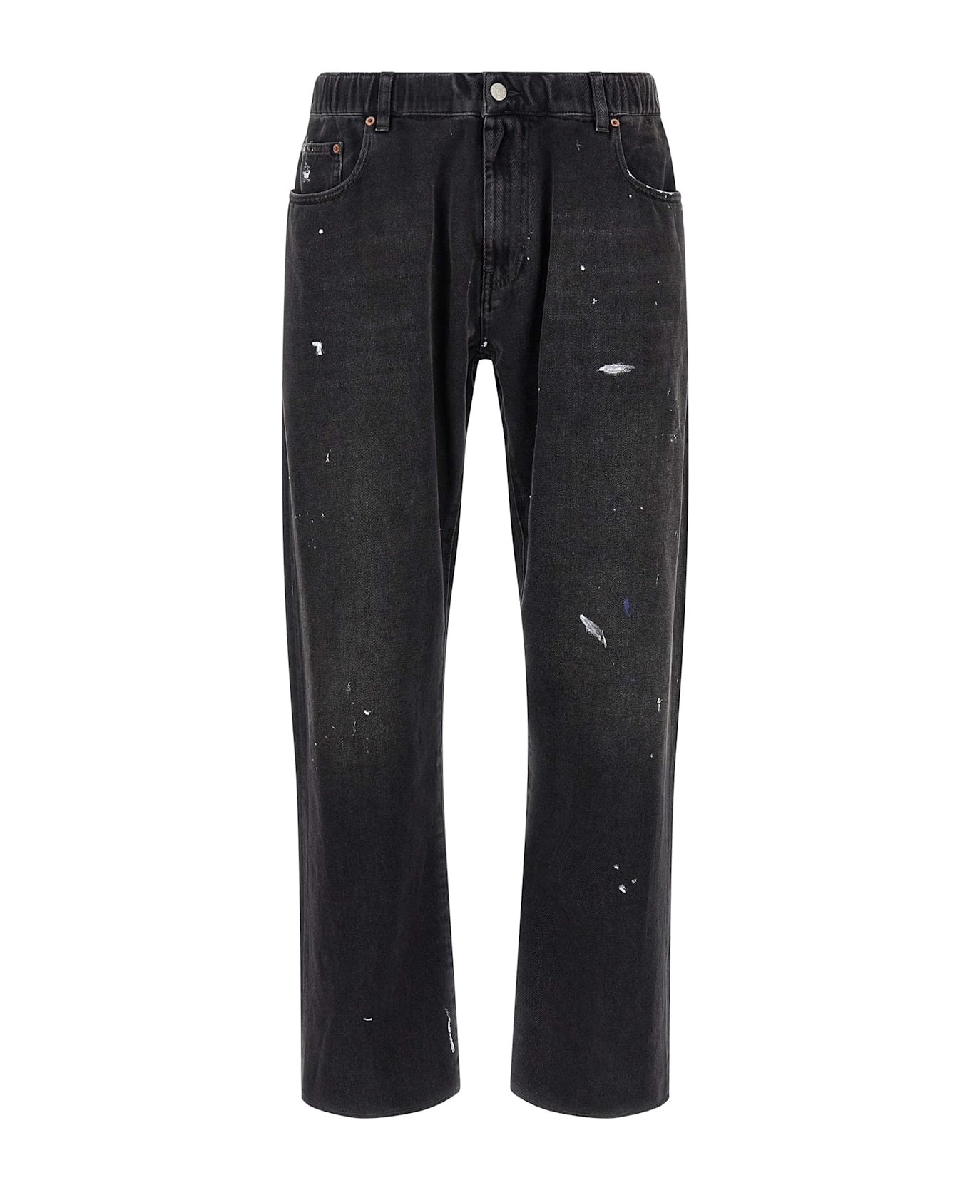 'Paint' cotton denim jeans with elastic waistband, button and zip closure, frayed stain-effect details on the hem, 5 pockets. Composition: 100% cotton