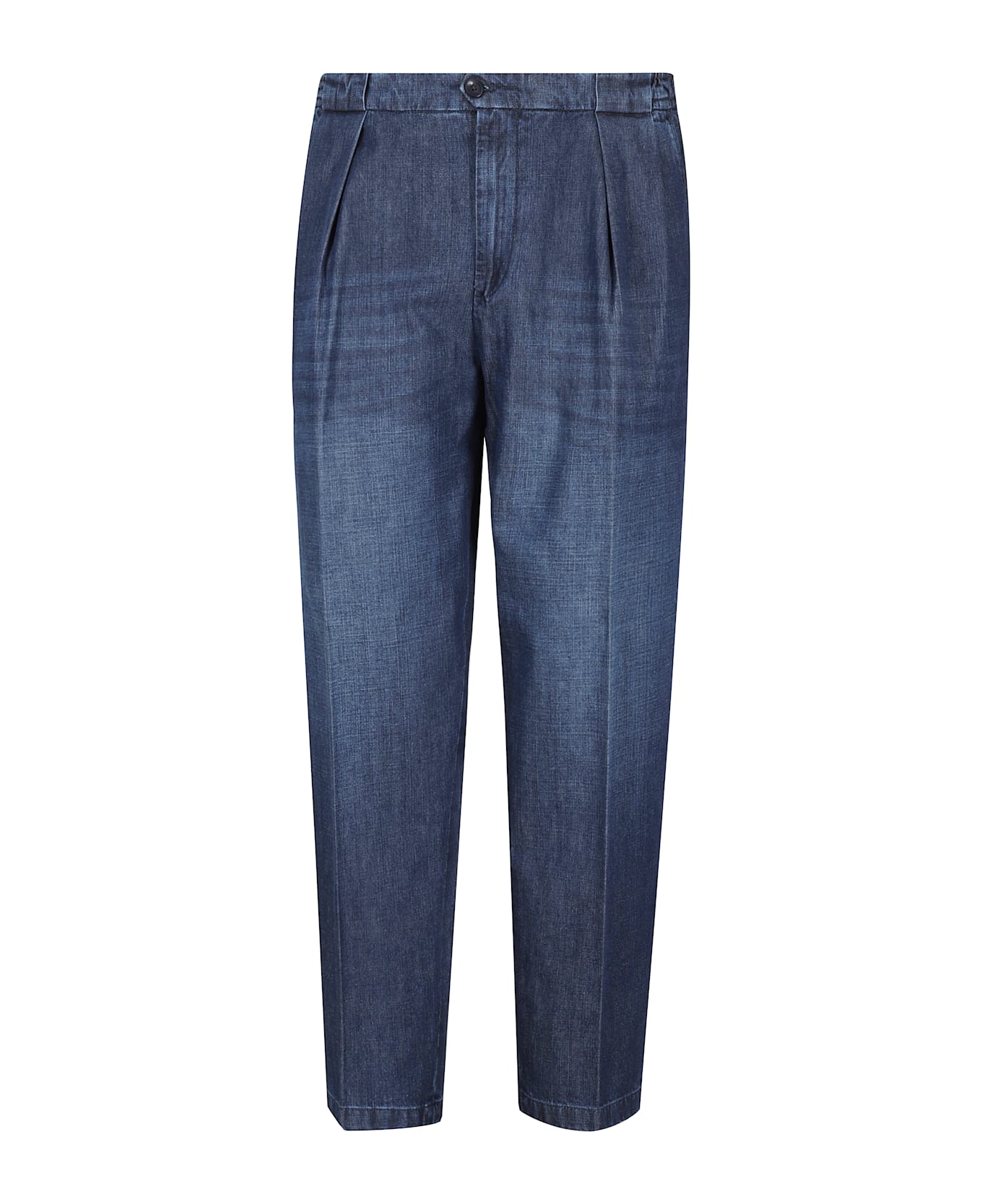 Portobello Jeans - Bridle - Blue color - Lightweight denim fabric - Mid-rise waist with elastic insert and belt loops - Tapered leg with darts - American style side pockets - Flush back pockets with button - Zip and button front closure - Easy fit