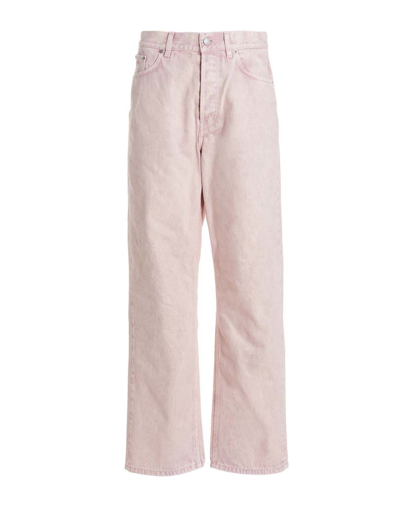 'Napa' bleached-effect cotton denim jeans with button closure, five pockets, and a leather logo tag.