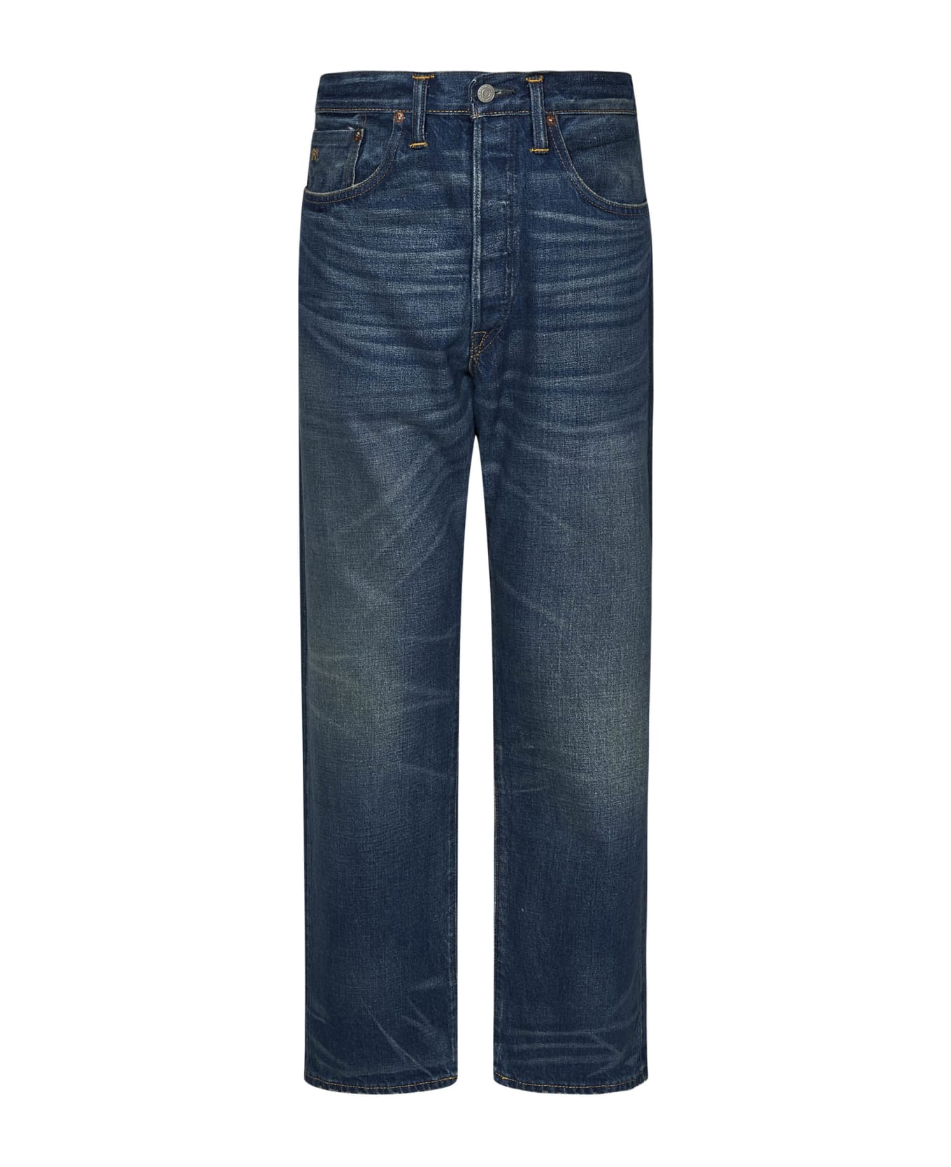 Composition: Covered Front Closure With Exposed Button Mid-rise With Belt Loops Five Pockets; Drop Crotch Logo Embroidery On The Fifth Pocket Logo Label Sewn On The Back Contrast Stitching; Delavé Loose Fit With Straight Leg Color: Blue , 100% Cotton Made In Usa