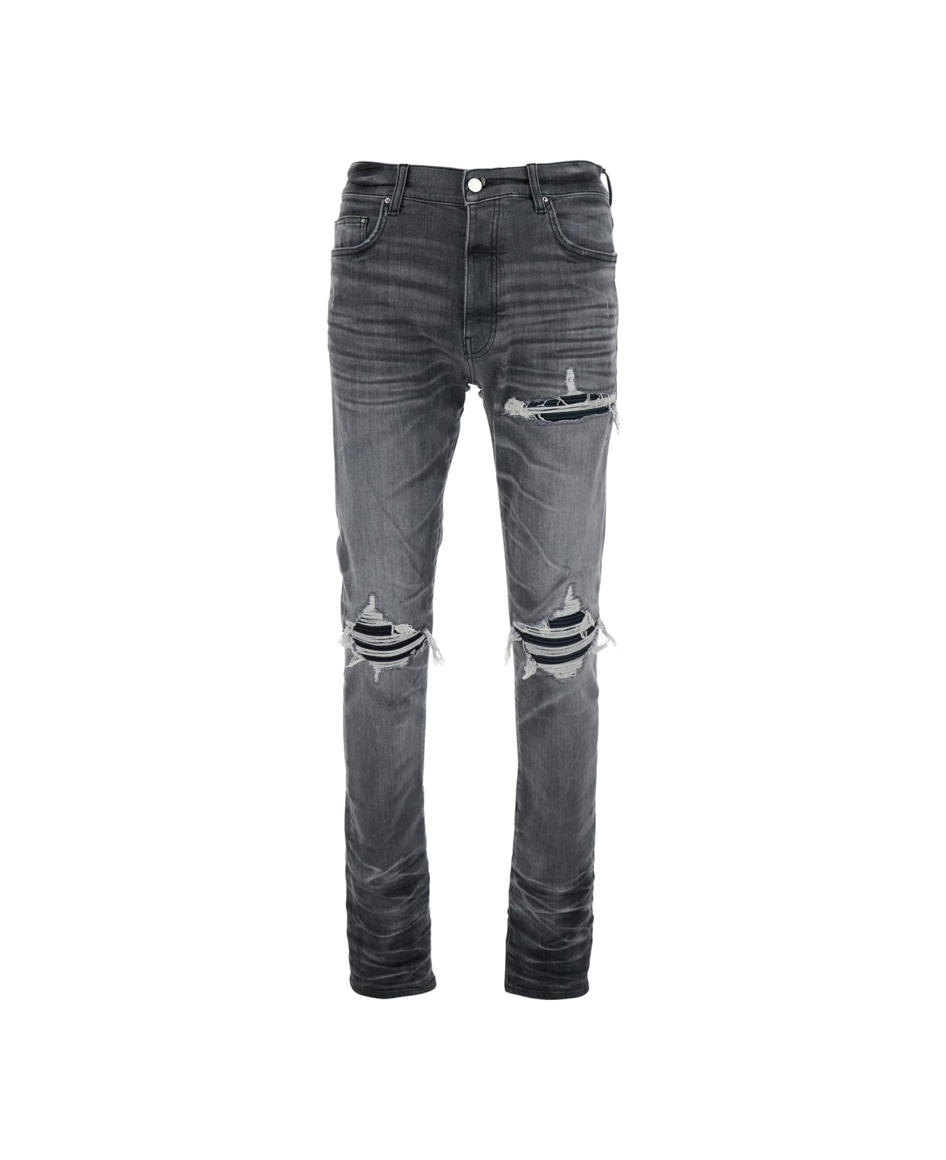 Grey Jeans With Tear Design And Belt Loops In Cotton Man