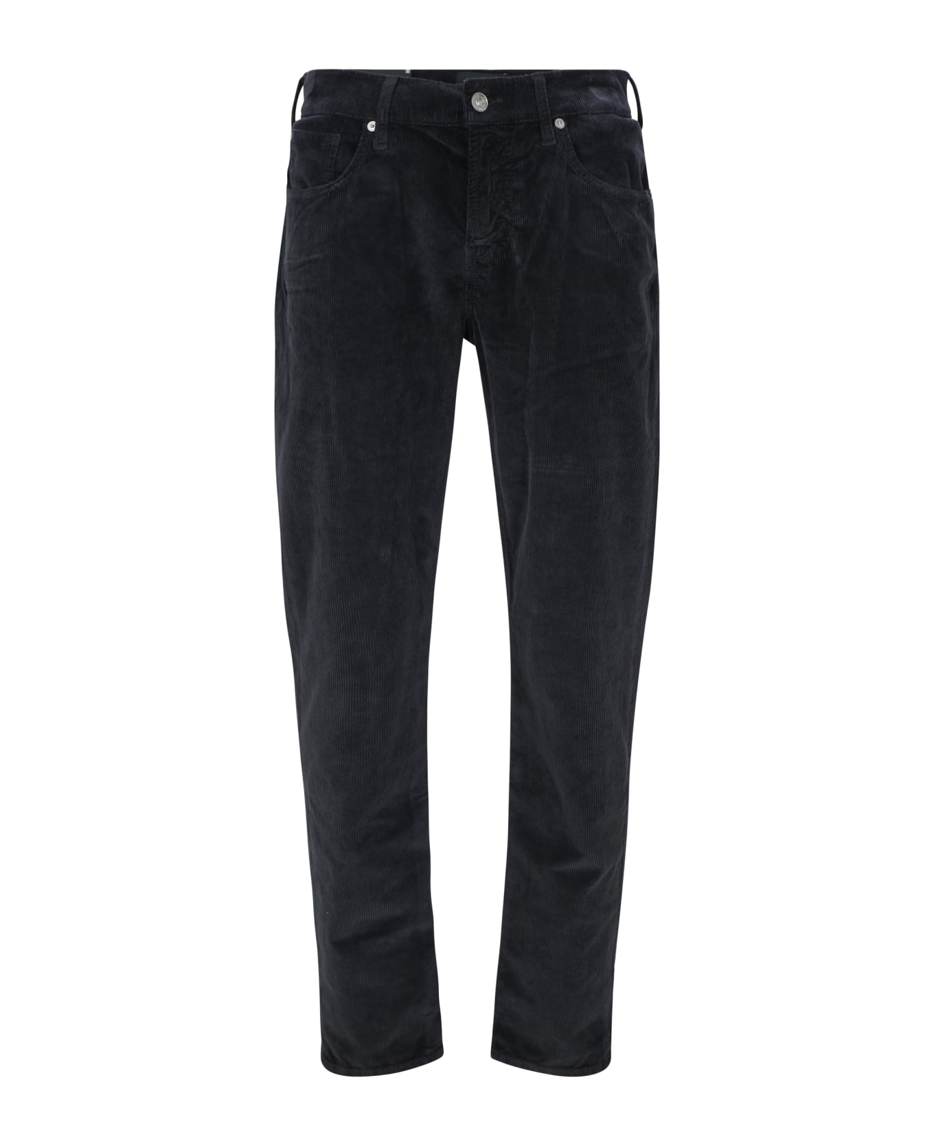 Tapared cotton jeans by 7for, five-pocket straight style, front button and zipper closure, waistband loops, monochrome pattern, velvety ribbed design, regular fit.