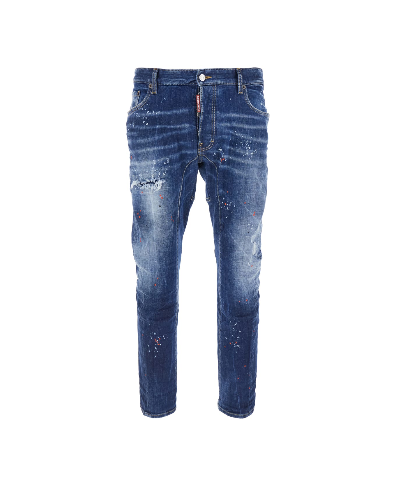 Jeans Blue Belt loops Front button and zip closure Ripped detail on the front Logo patch on the rear Paint embellishments on front and rear Straight hem Five-pocket style Denim Rgular fit