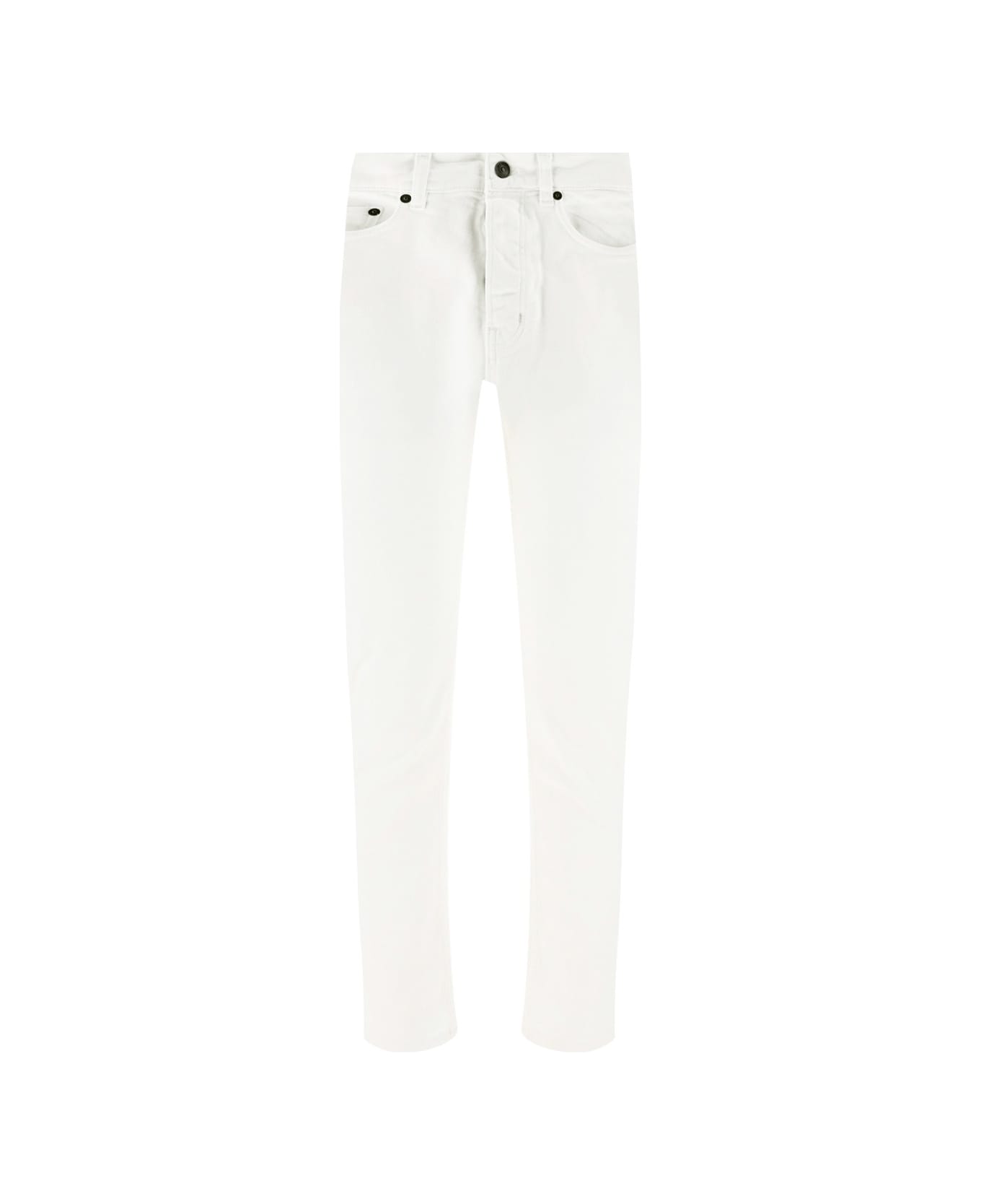 Cotton tokyo slim old jeans by haikure, straight five-pocket design, a concealed front button fastening, belt loops for waistband, and an iconic branded leather patch with signature pressure print applied to the back.