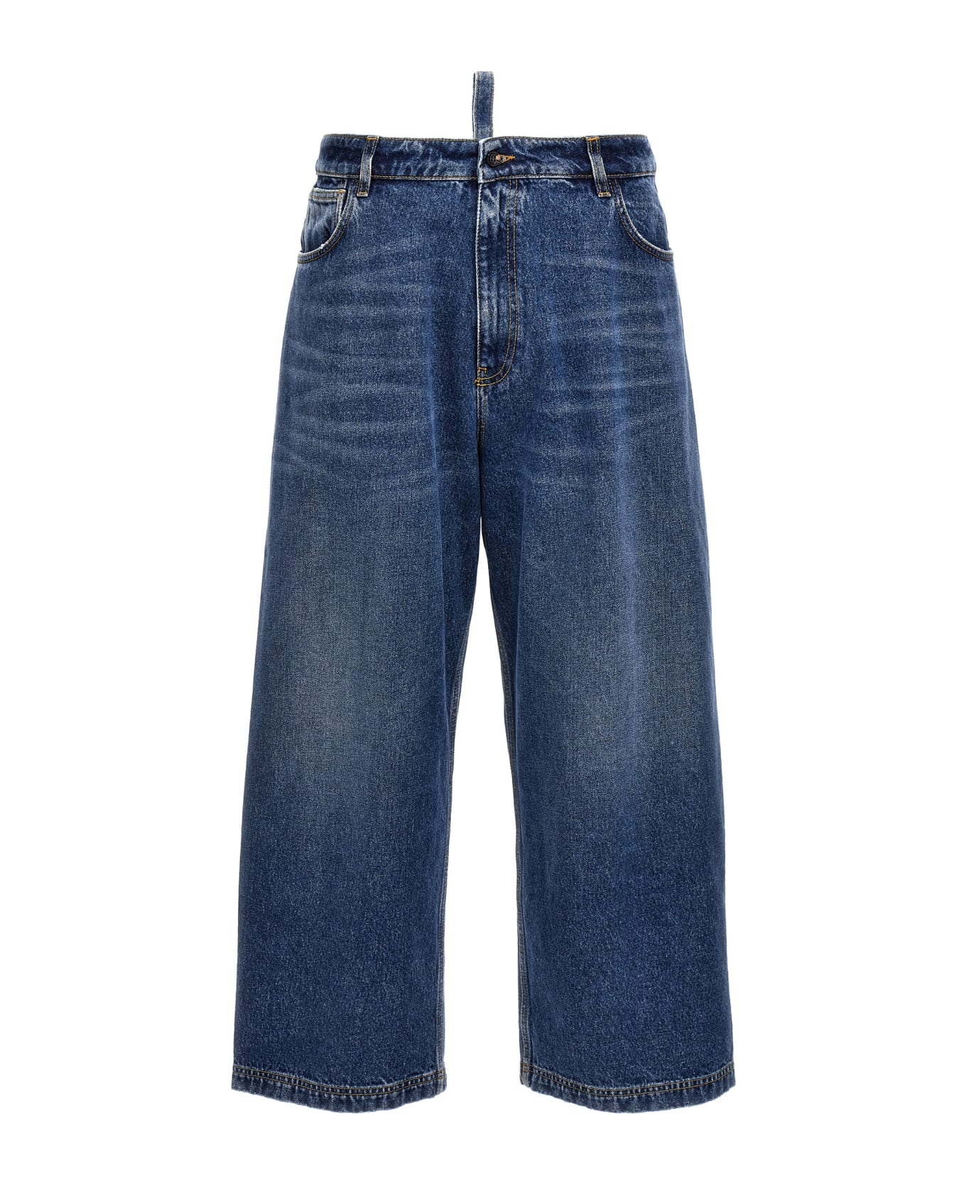 'Wide' denim jeans with loose fit and loose leg, zip and button closure.