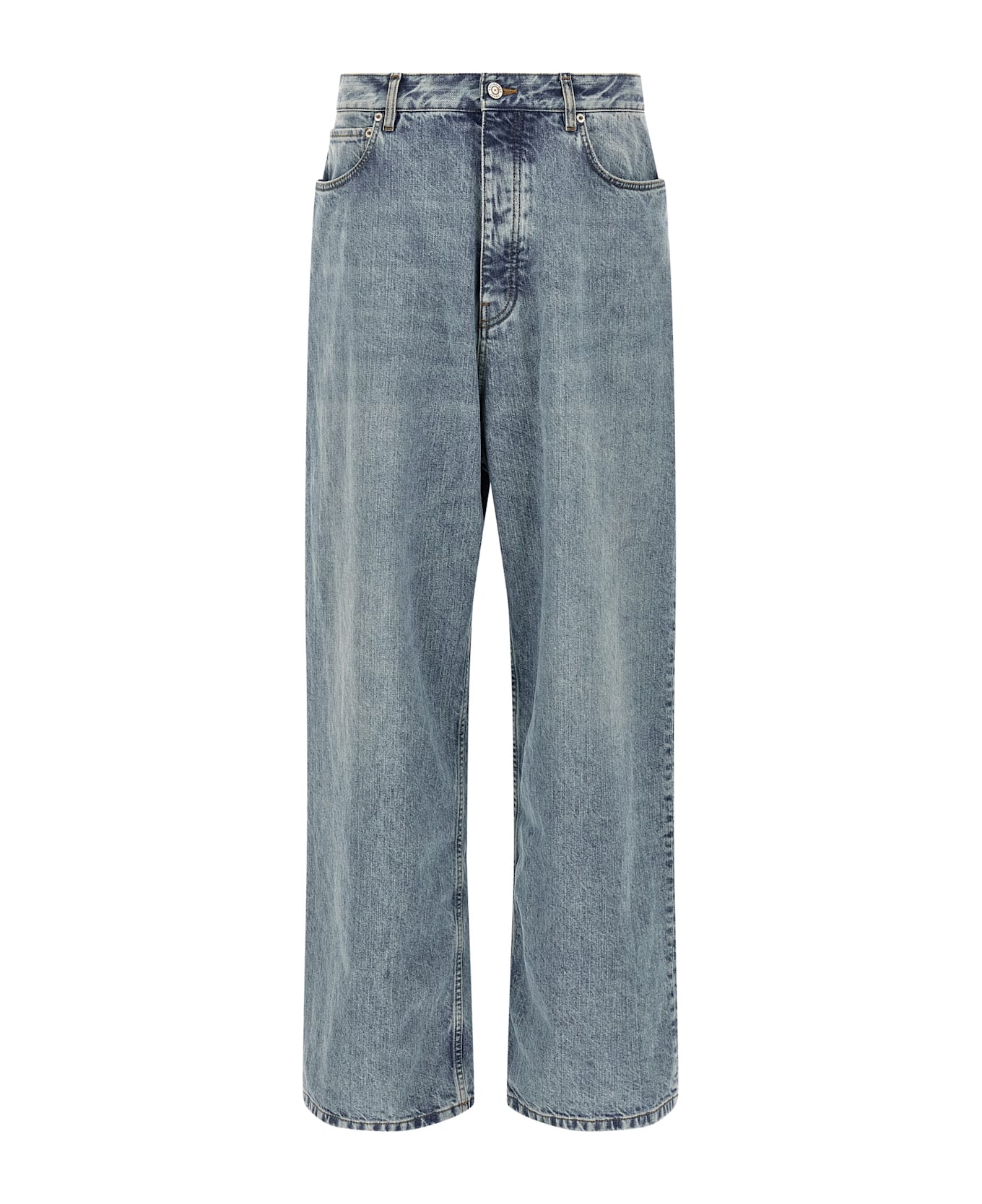Used-effect delavé cotton denim jeans, front button closure, low crotch, wide leg, five pockets, back logo tag. Composition: 100% cotton