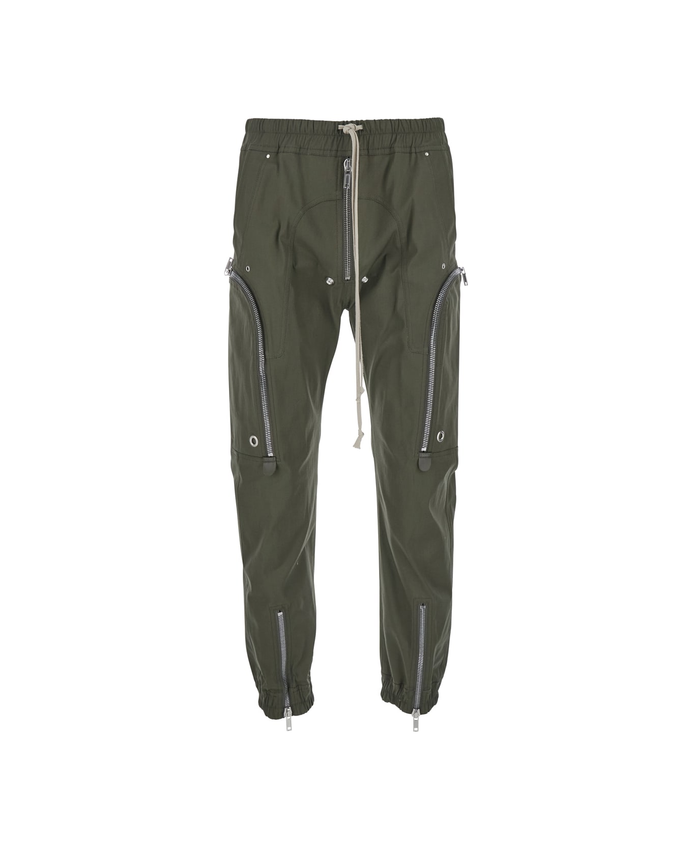 Pants Green Elastic waist Two front maxi zip pockets Two rear patch flap pockets Zipped cuffs Elastic hem Cotton stretch Relaxed fit