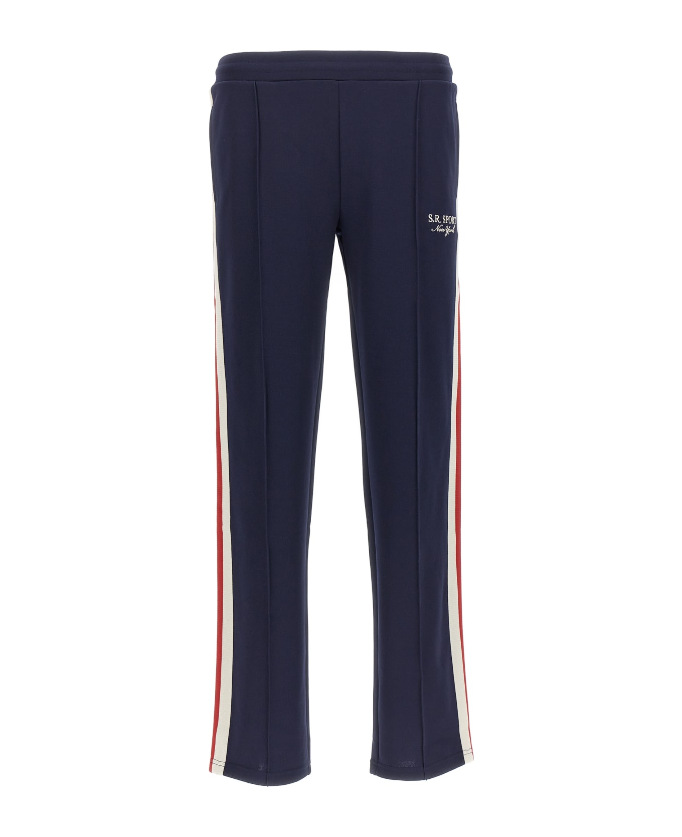 'Bowie' tech fabric joggers with contrast side bands, front logo embroidery, an elastic and drawstring at the waist, pockets.