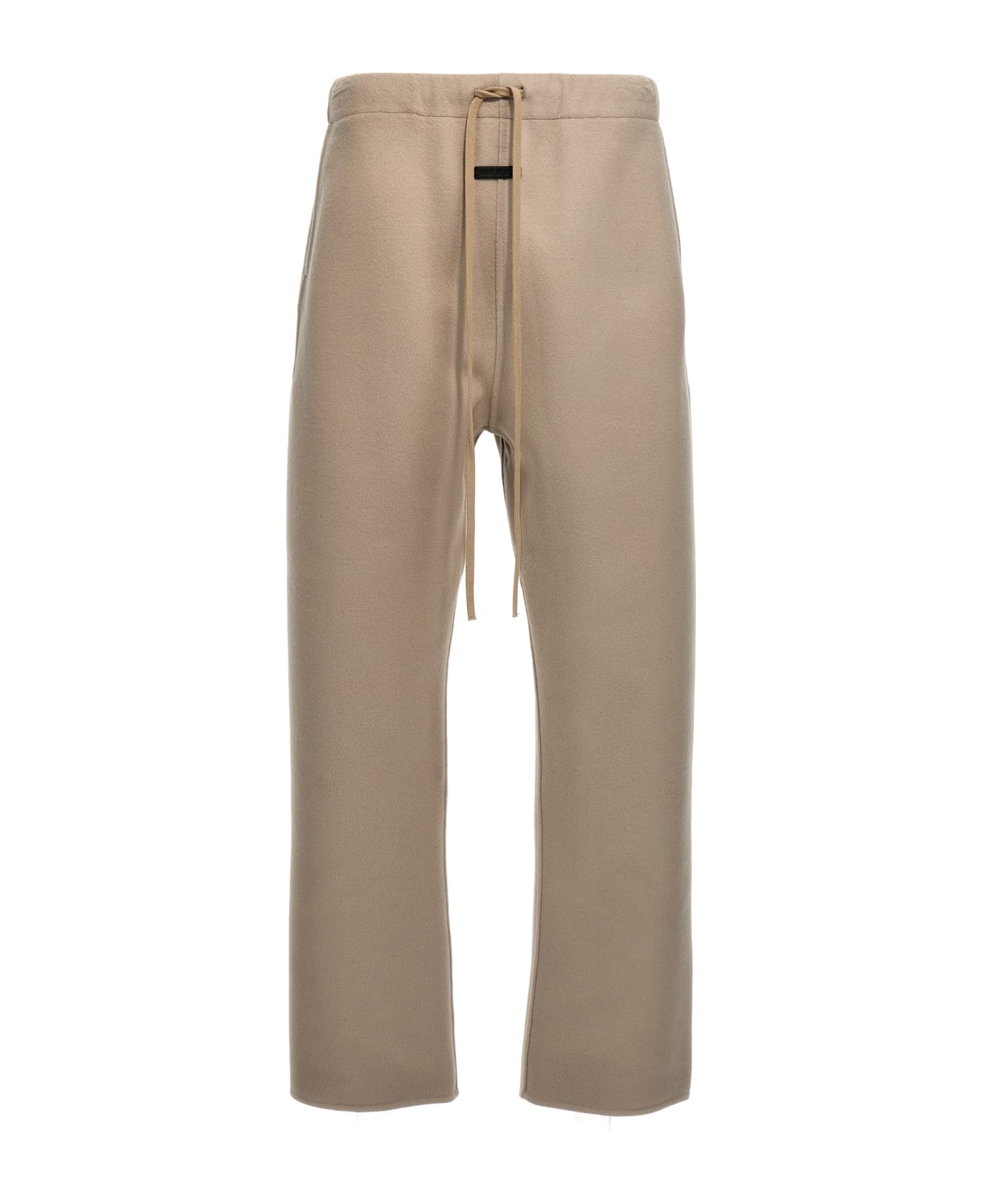 Eternal' wool and cachemire pants with elastic and drawstring at the waist, pockets, and a leather logo patch at the front.