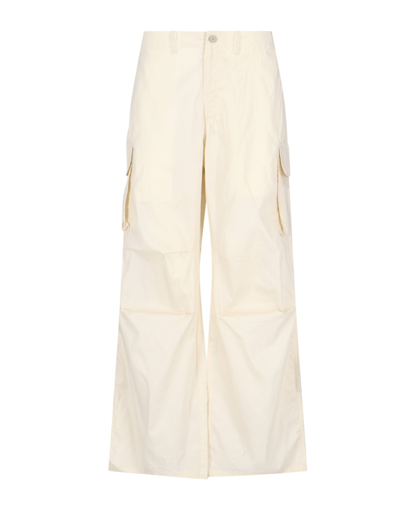 Our Legacy 'Mounth' white cotton cargo pants with belt loops, button closure, two front tashce, maxi side cargo pockets, a single back flap and straight hem.
