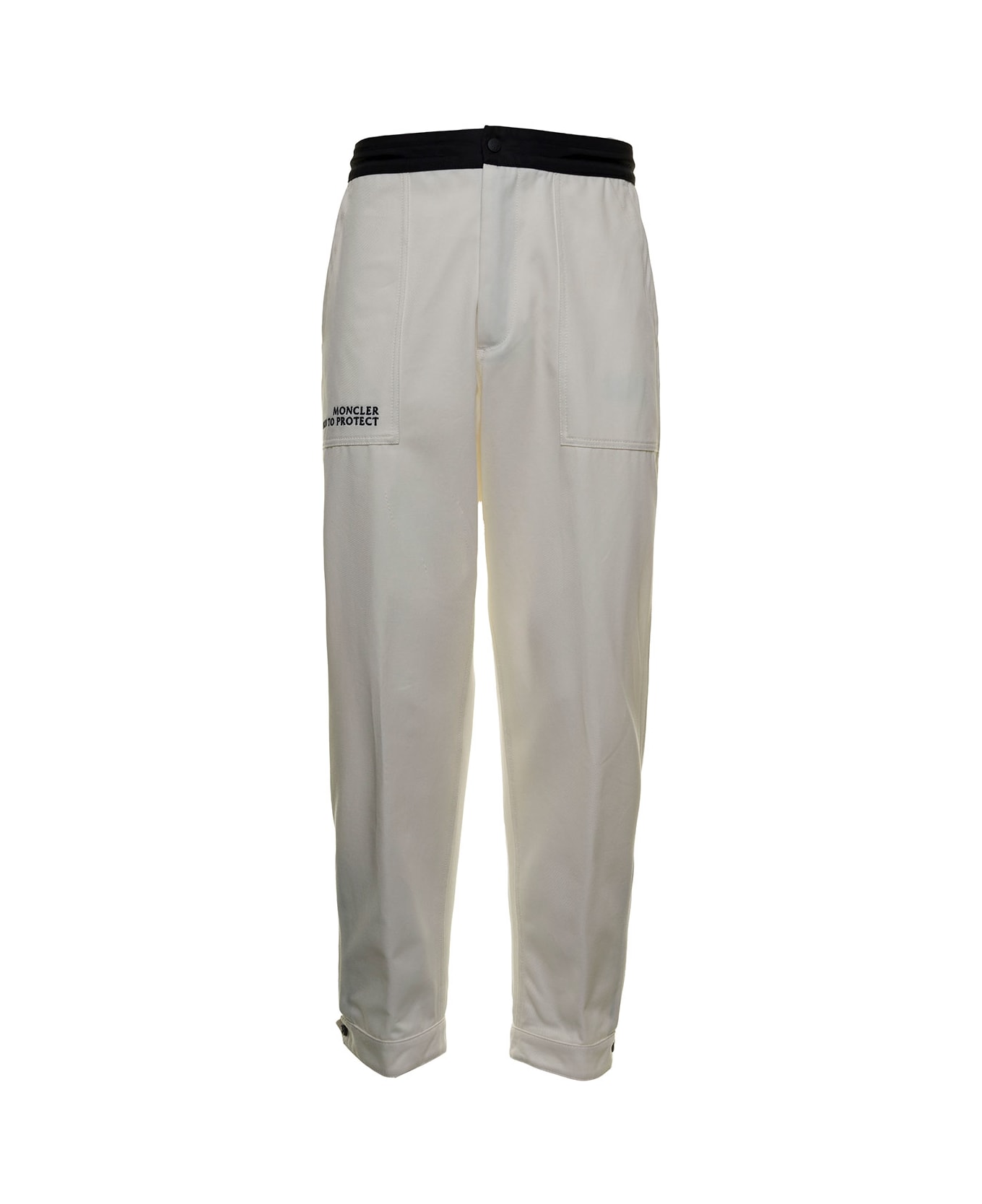 Trousers Black and white Cotton Elastic waist Side lettering "Born to protect" Two side pockets Two back pockets with flap