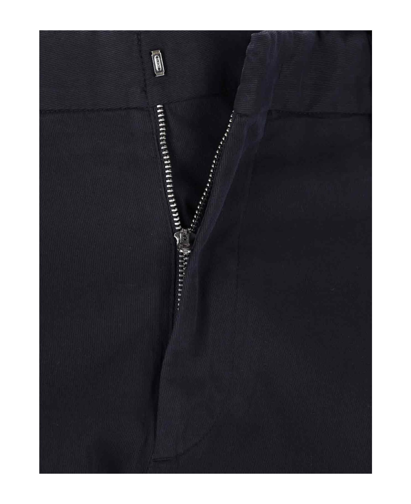 Zegna navy blue cotton pants with mid waist, belt loops, hook and zip closure, two side pockets, two back button welt pockets, straight leg. 97% cotton, 3% lycra
