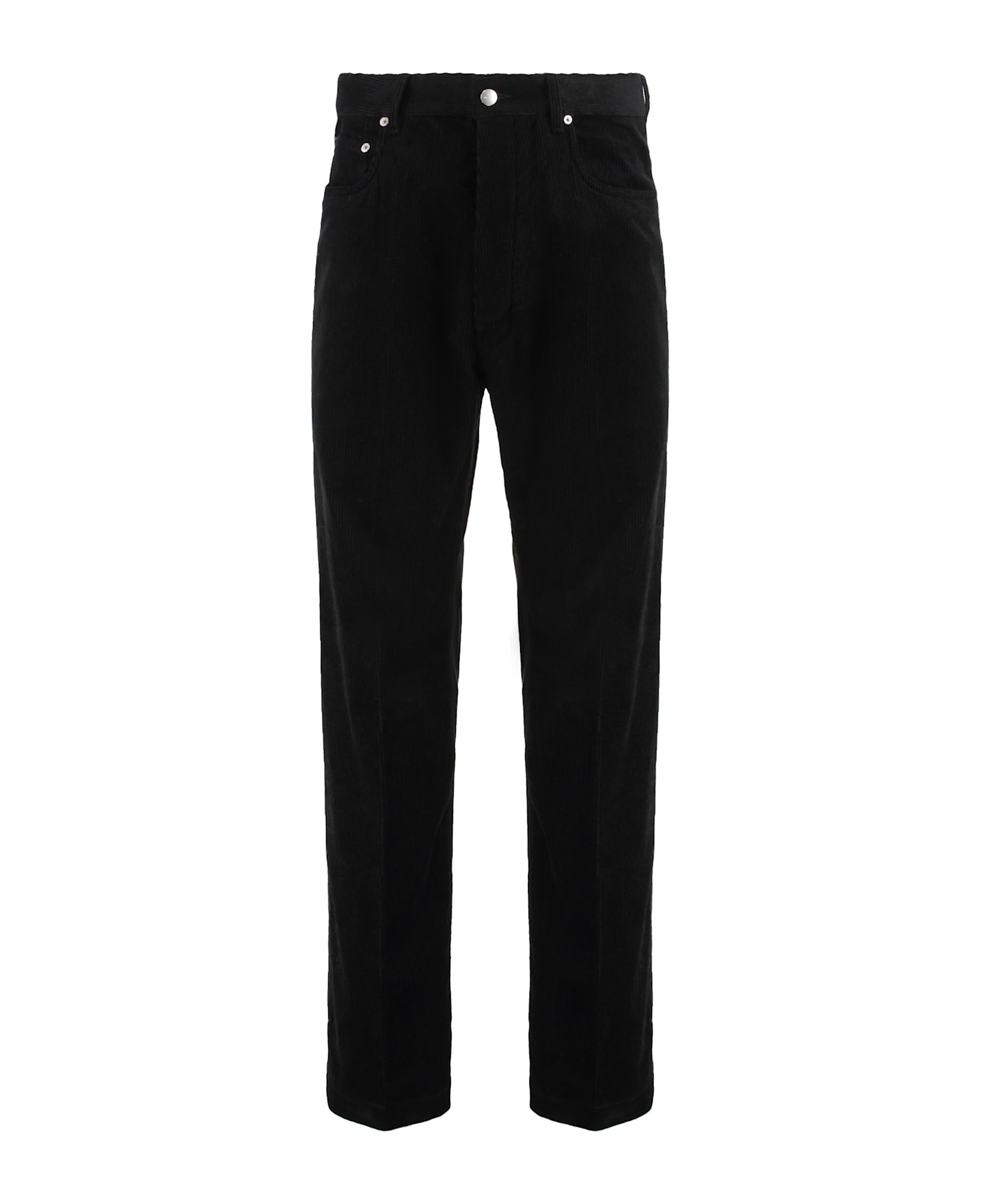 Classic black trousers made from durable fabric. they offer a comfortable fit and a straight cut, suitable for a versatile look. the waist is equipped with belt loops and the closure has a zip with a button and five pockets. perfect for being paired with different styles and occasions. ideal for everyday use and casual outfits.