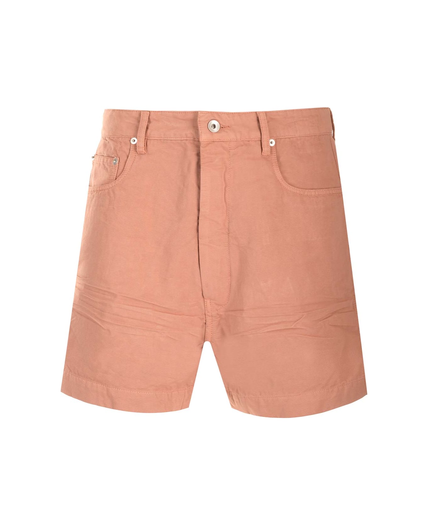 Dark pink cotton shorts from Rick Owens, with 5 pockets, hidden zip and button.