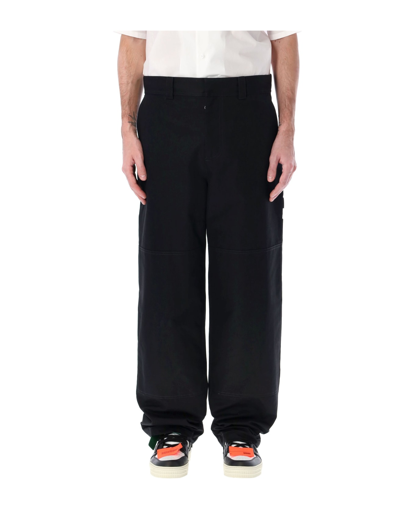 Cotton Diag Pocket Carpenter Pant By Off-white. Featuring: Hook, Button And Zip Fly Belt Loops Side Slit Pockets Rear Patch Pockets White Diag Motif Print At Back Pocket Wide Leg The Model Is 1,90m Tall And He's Wearing Size L