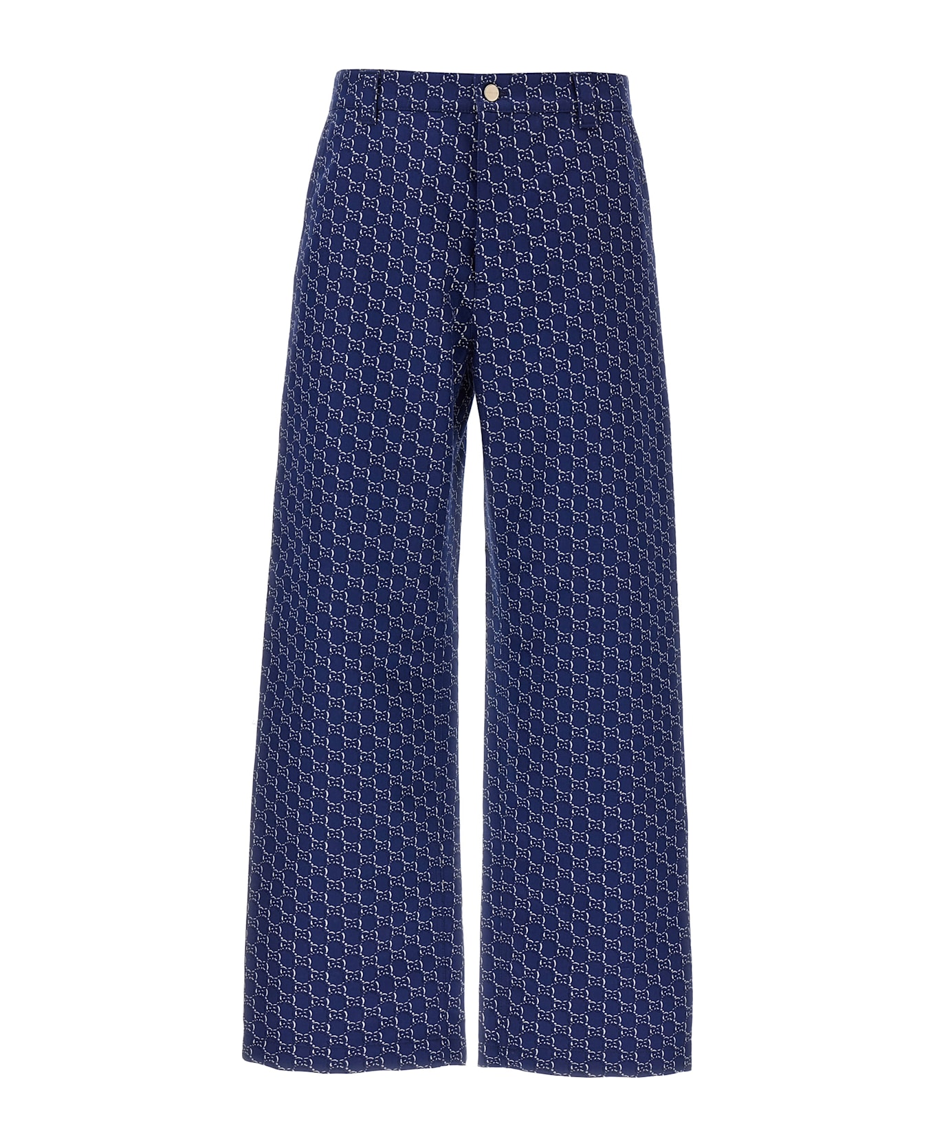 Jacquard cotton pants with 'GG Shadow' pattern, web label and 'Gucci Incrocio GG' on the back, straight leg, pockets, zip and button closure. Composition: 100% cotton