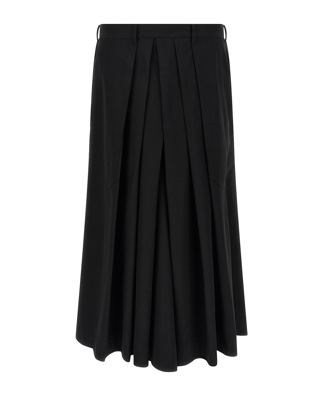 'Hakama' wool gabardine trousers, front drape, pockets, button closure with bellows, wide crop leg.