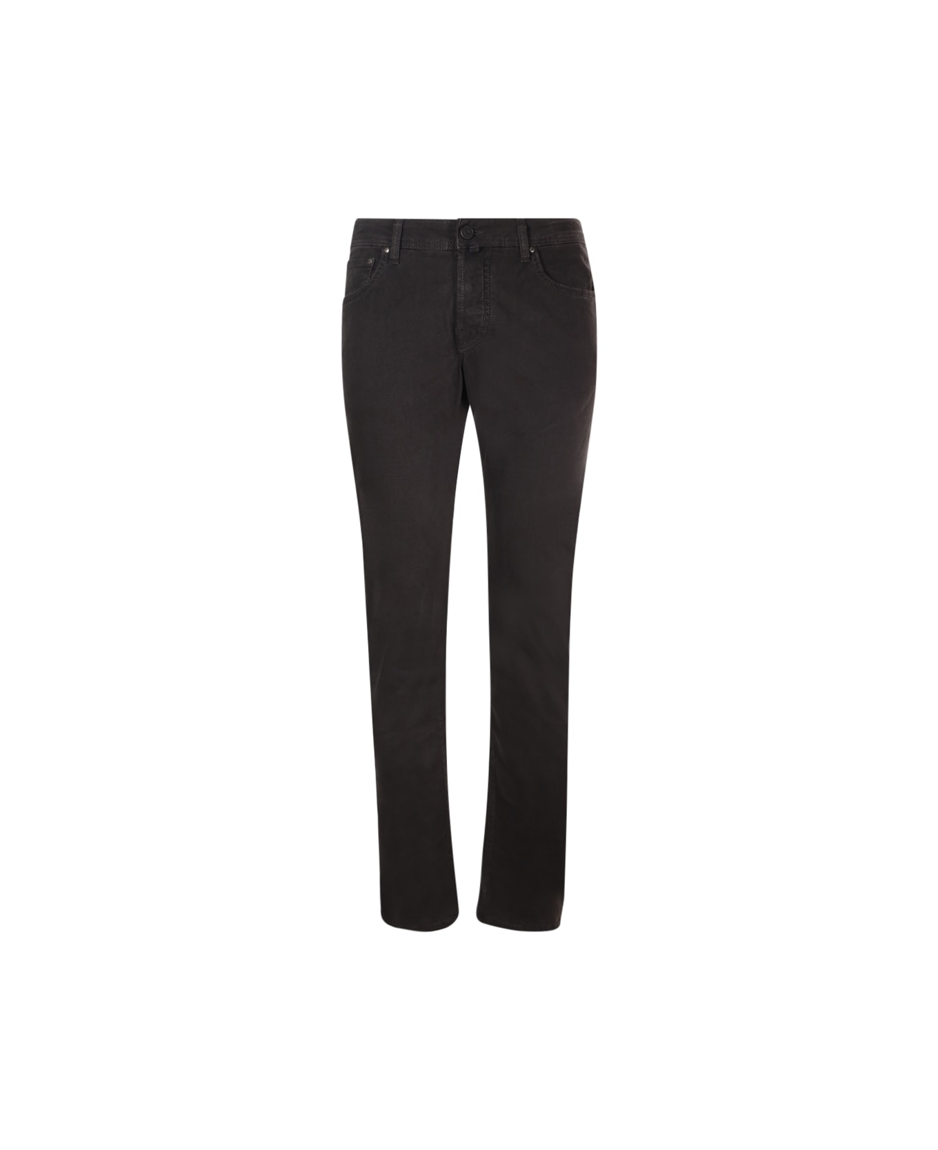 Button closure, classic five-pocket design, tonal stitching. Slim Fit. Black colour. Composition: 98% Cotton, 2% Elastane.
