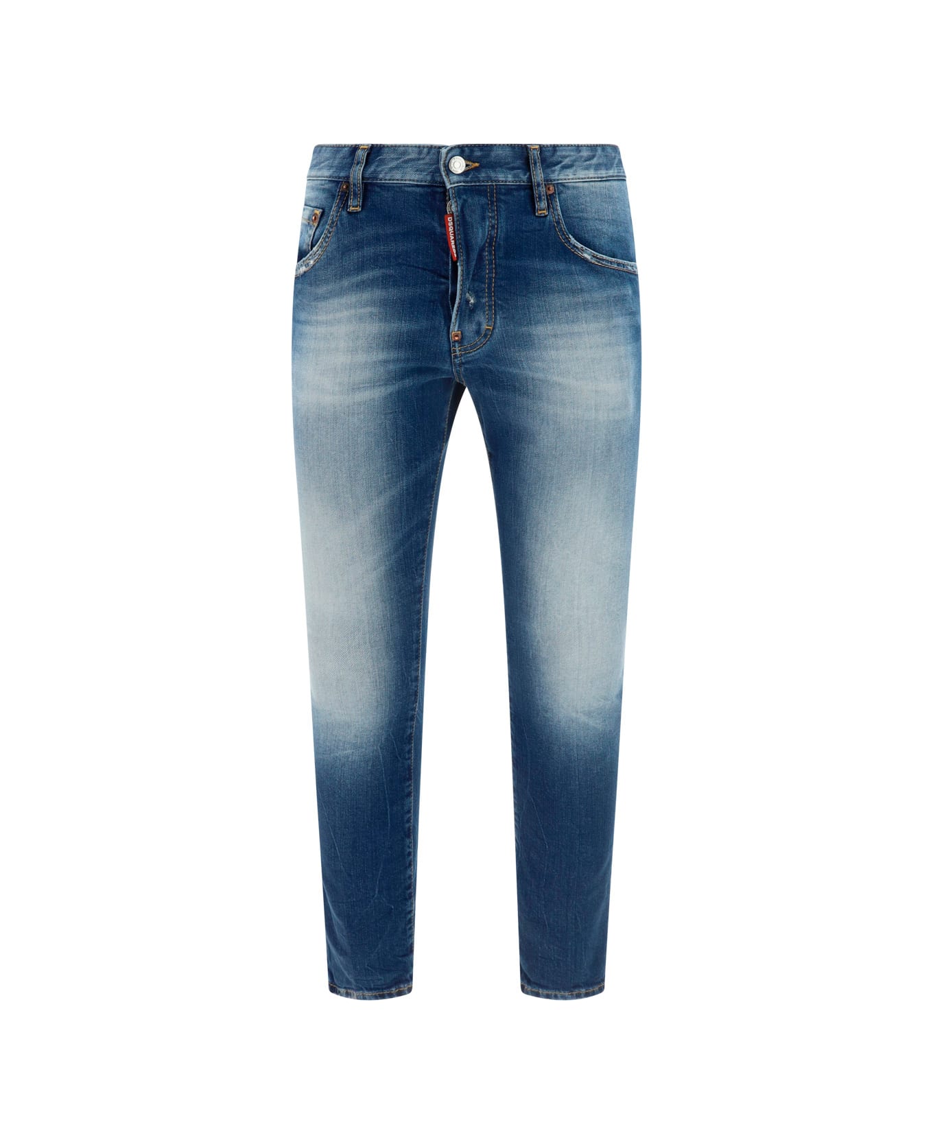 Cotton jeans by dsqaured2, five-pocket skinny style, shaded design, front button and zipper closure, belt loops for waistband, iconic leather patch with signature brand pressure print applied at back.