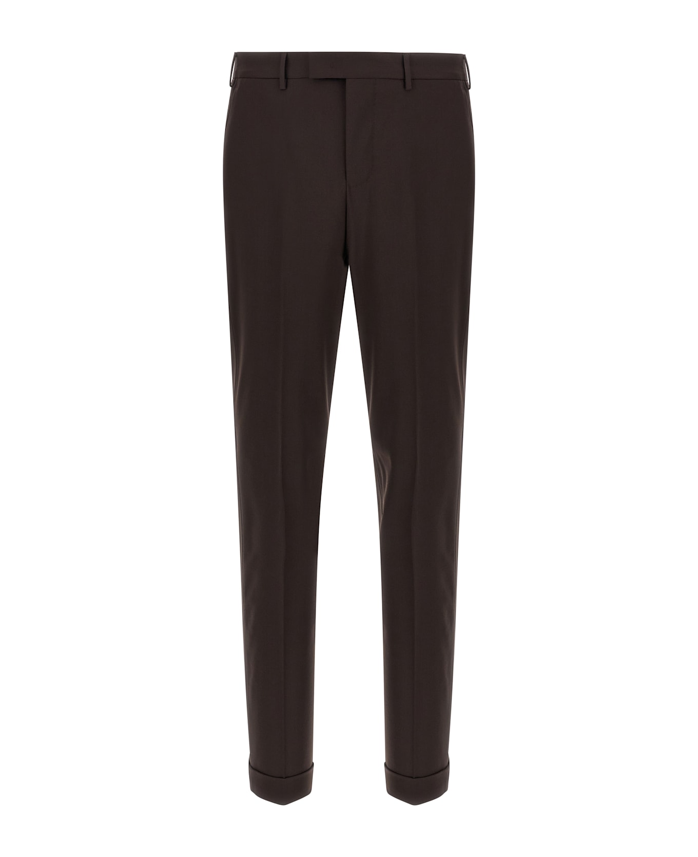 'Master' pants in stretch 350gr batavia wool, hook and button zip closure, pockets, leg with central crease.