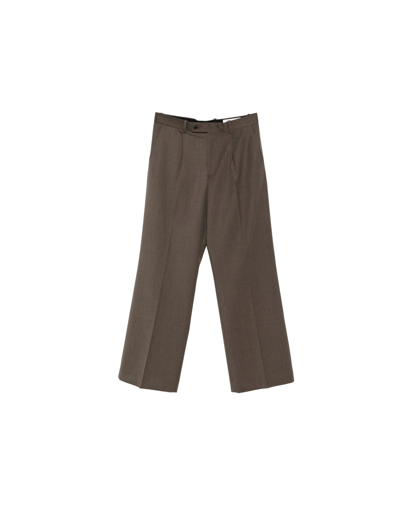 hazelnut brown pleats belt loops button fastening side seam pockets rear welt pocket