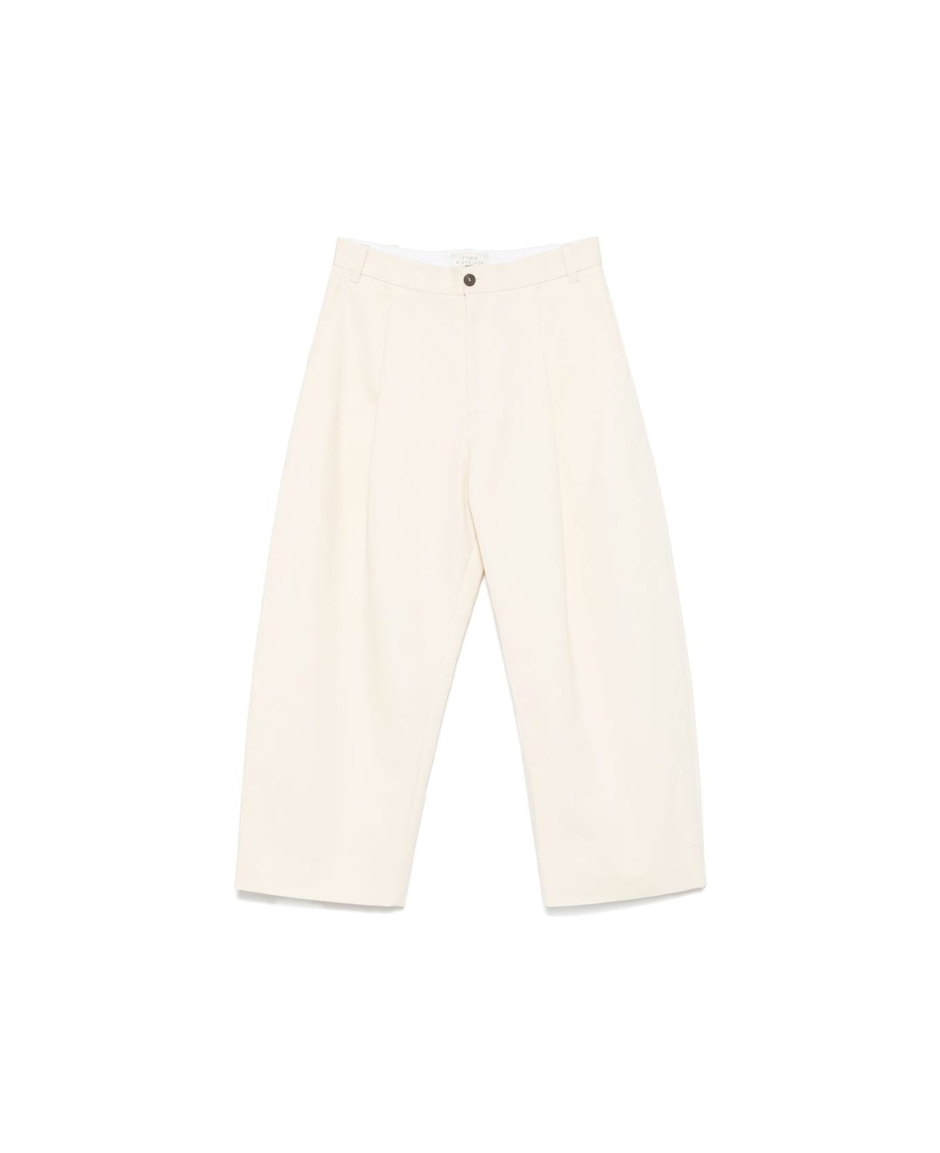 ecru concealed fly and button fastening belt loops two side slit pockets two rear patch pockets