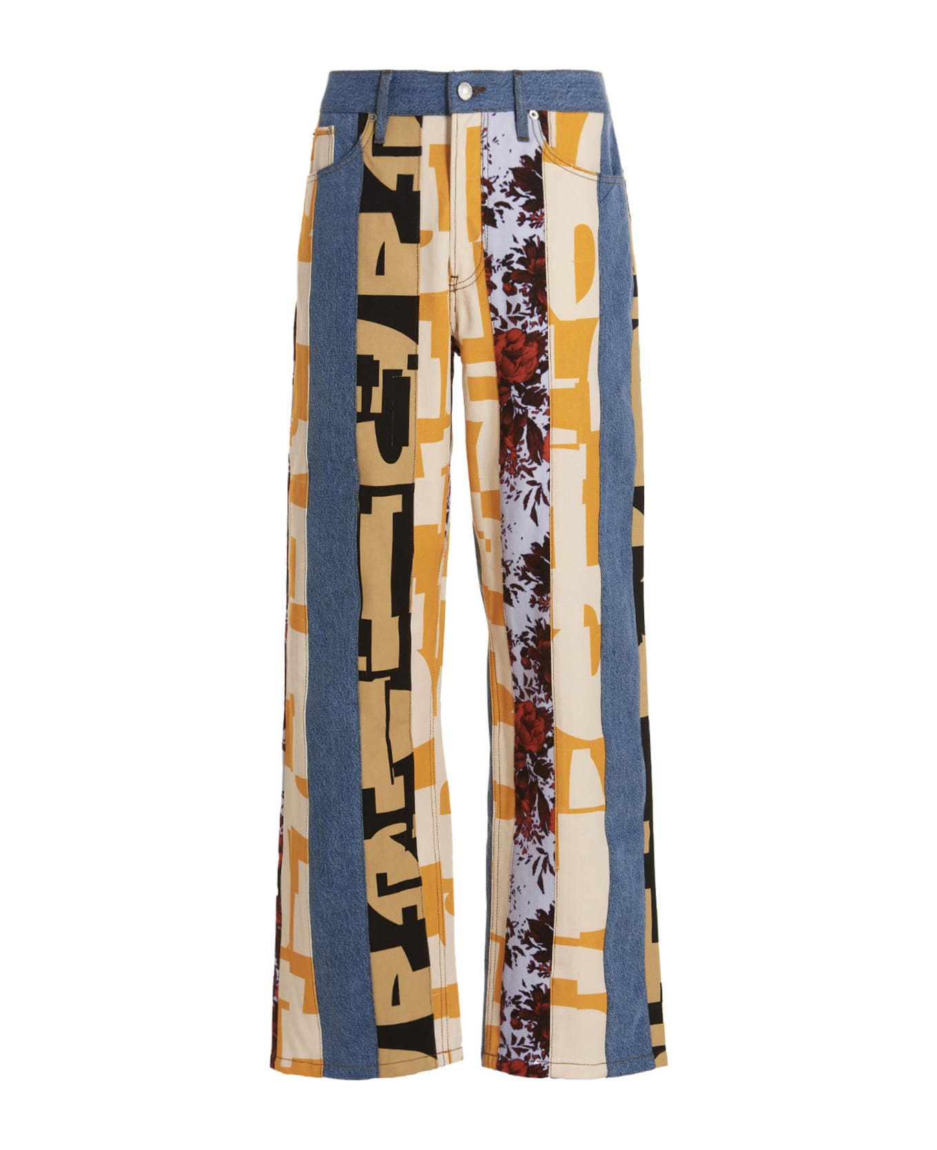 'Napa' patchwork cotton denim jeans with button closure, five pockets and a leather logo tag.