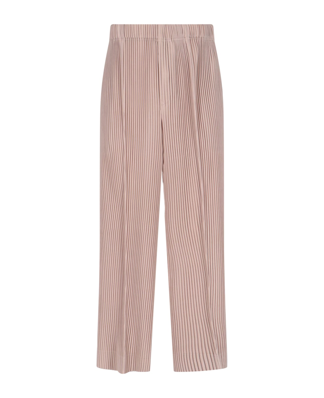 Home Plissé pleated pants in pink fabric with pleated pattern, high elastic waistband, two side pockets, straight leg.