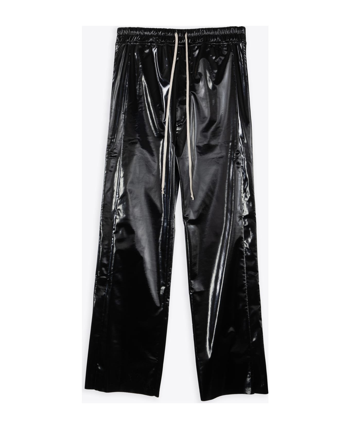 Black pvc pant with elastic waistband abd drawstring. Metal snaps side detail. Two side pockets. Two back pockets with flap. Baggy fit. Composition: 70% cotton 30% polyurethane. Made in Italy.