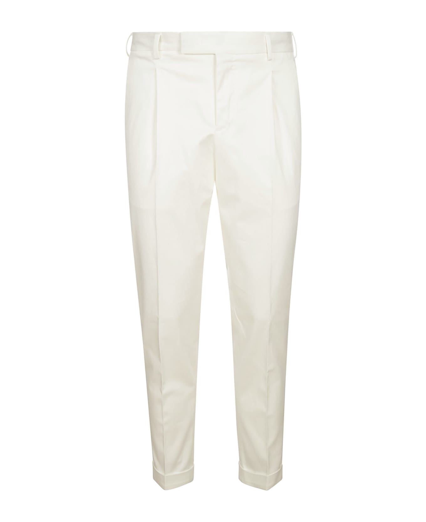 PT Torino White cotton trousers, zip, button and flap closure, side pockets, flap pockets on the back. Composition: 97% Co , 3% Ea