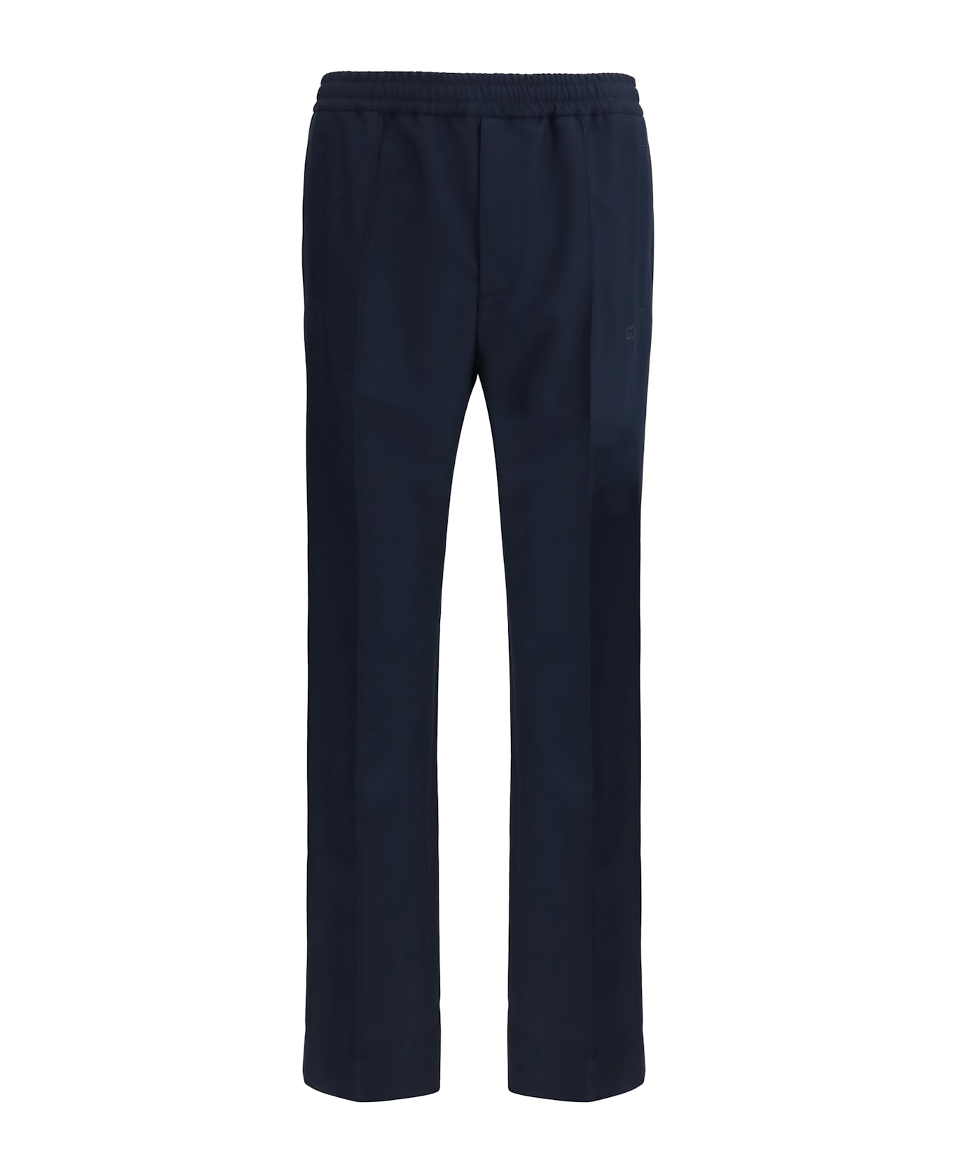 The technical panama trousers by gucci blend refined craftsmanship with a relaxed, modern attitude. made from a textured technical panama fabric, they are enriched with a subtle tonal gg embroidery and completed by the iconic web tape placed along the back. the elasticated, gathered waistband with an internal drawstring adds comfort, while the front zip opening and clean welt pockets keep the silhouette polished. sharp front creases introduce a tailored touch, balancing elegance and ease.