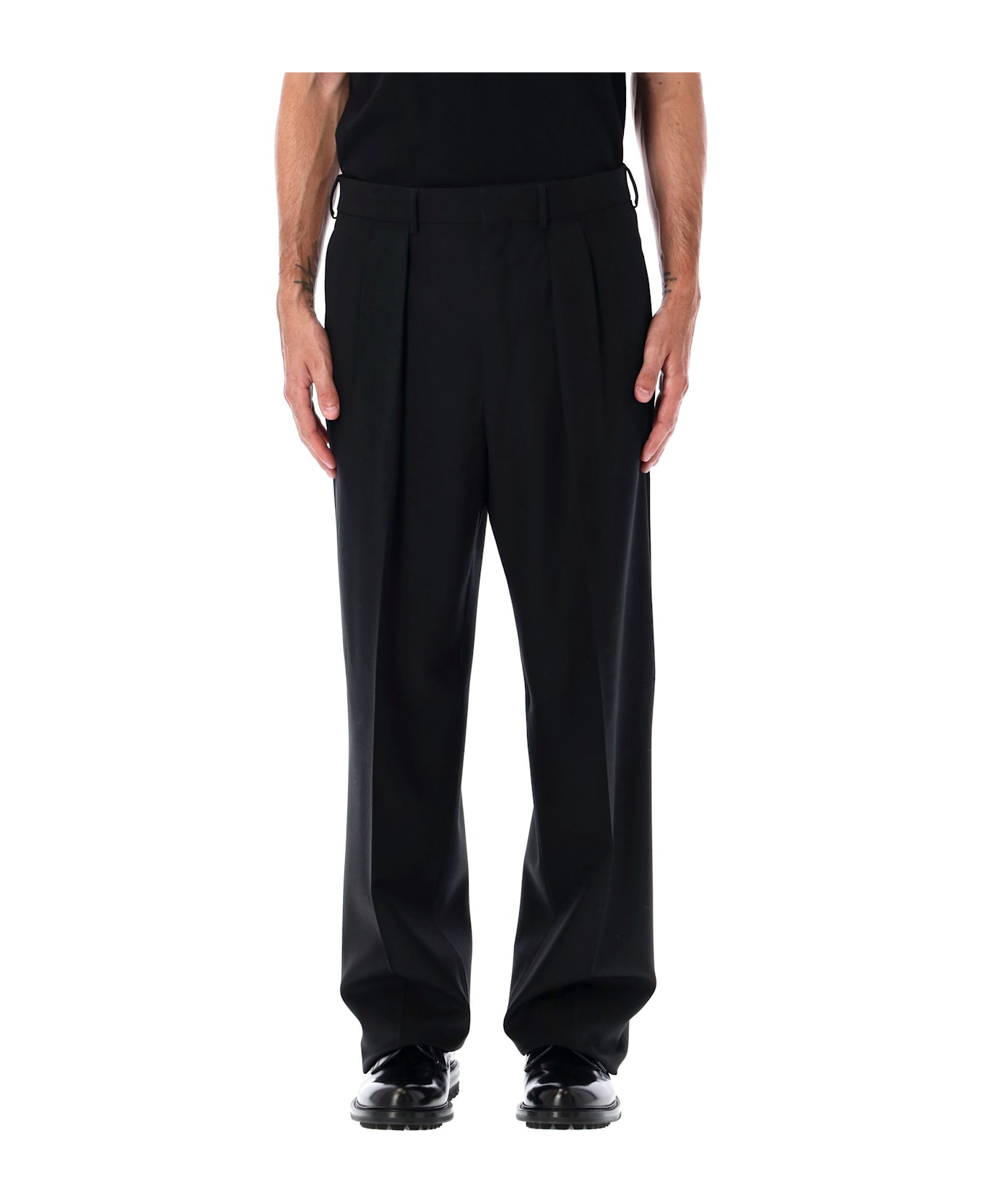 Crafted In Fine Wool Twill, These Tom Ford Trousers Reinterpret Classic Tailoring With Contemporary Precision. The Wide-leg Cut And Double Front Pleats Ensure An Elegant Drape And Relaxed Sophistication, Ideal For Refined Daywear Or Elevated Evening Looks. Double Front Pleats Hidden Hook And Zip Fly Slanted Front Pockets Back Welt Pockets With Buttons Belt Loops At Waist Andrea Is 1,90 M And Wears Size 50