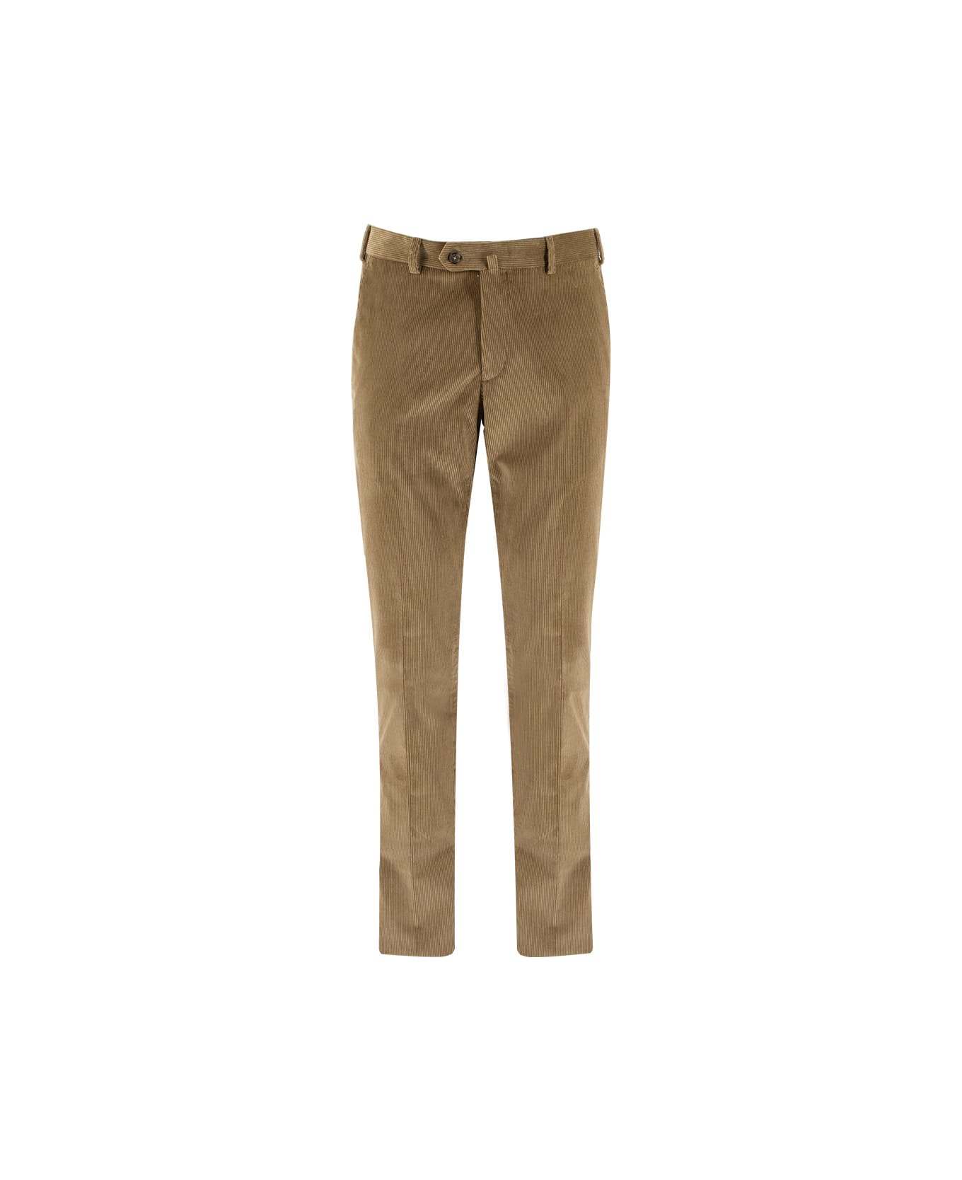 A versatile item for the casual wardrobe, the trousers made of corduroy, zip and button fastening, welt back pockets with button. Composition: 100% CO