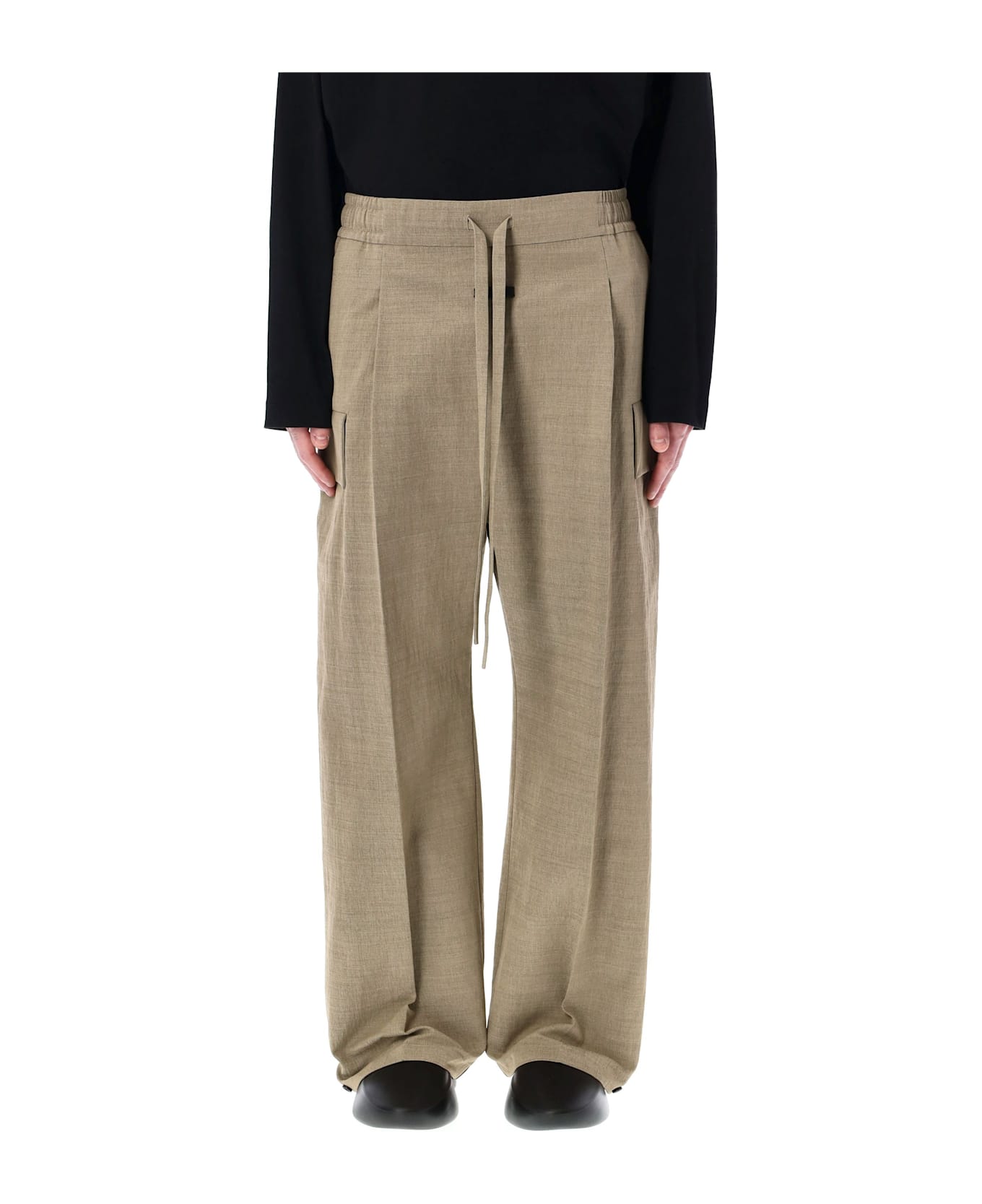 Wide Leg Cargo Pant By Fear Of God. Featuring: Nylon Wool Blend Elasticated Waist With Drawstring Single Pleat Side Pockets Cargo Pockets Fear Of God Leather Label At Front Adjustable Hem Wide-leg Fit Model Is 1,90 M And Wears Size L