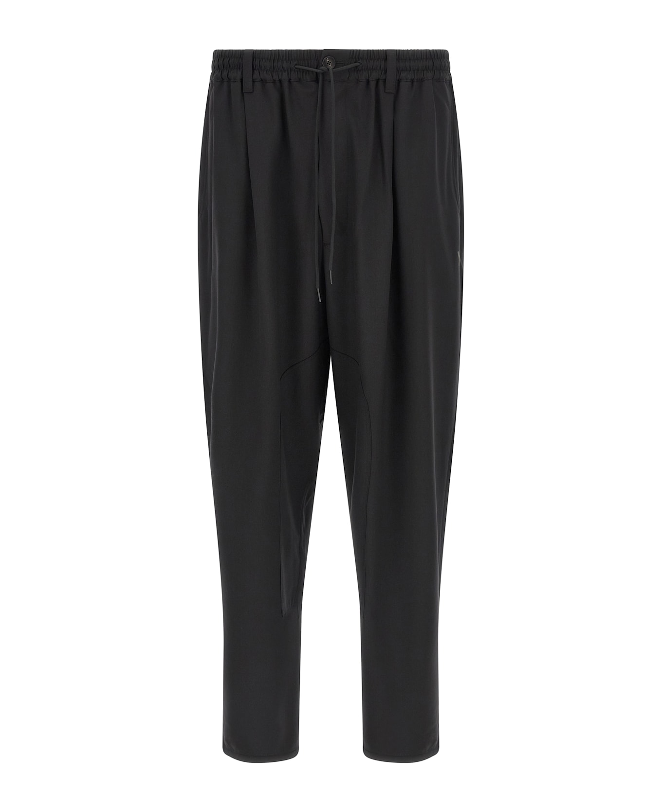 Wool pants, tone-on-tone 'Y-3' logo on the front, extra wide leg, drawstring elastic waistband, front zip and button closure, pockets.