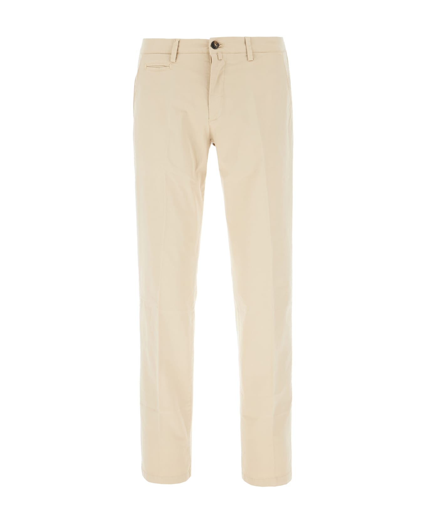 Pants realized in stretch cotton. -Belt loops at the waist -Concealed zip with a visible button closure -Slant pockets, a slit pocket at the front and two slit pockets at the back -Central ironed pleat